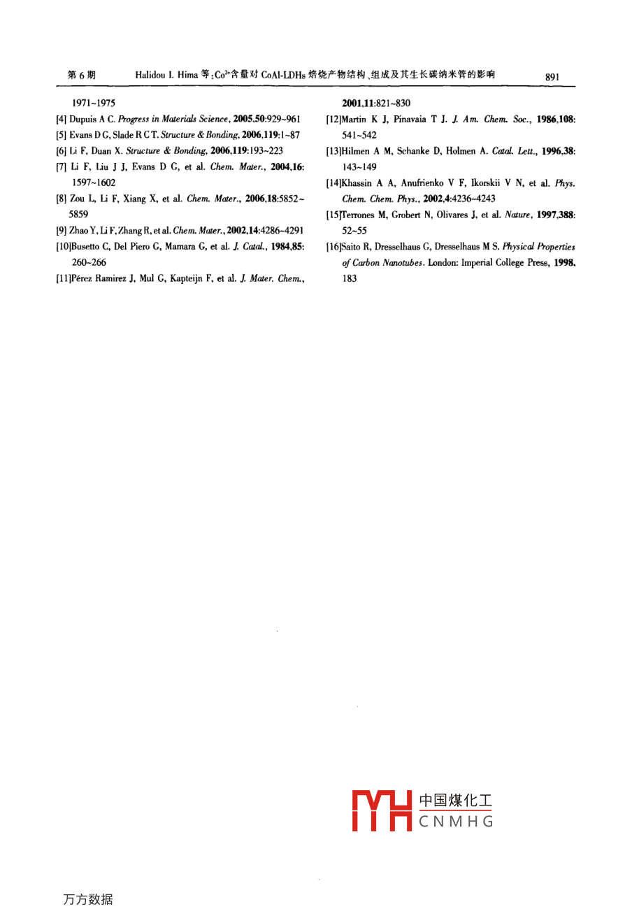Co2+含量對(duì)CoAl-LDHs焙燒產(chǎn)物結(jié)構(gòu)、組成及其生長(zhǎng)碳納米管的影響 Co2+含量對(duì)CoAl-LDHs焙燒產(chǎn)物結(jié)構(gòu)、組成及其生長(zhǎng)碳納米管的影響