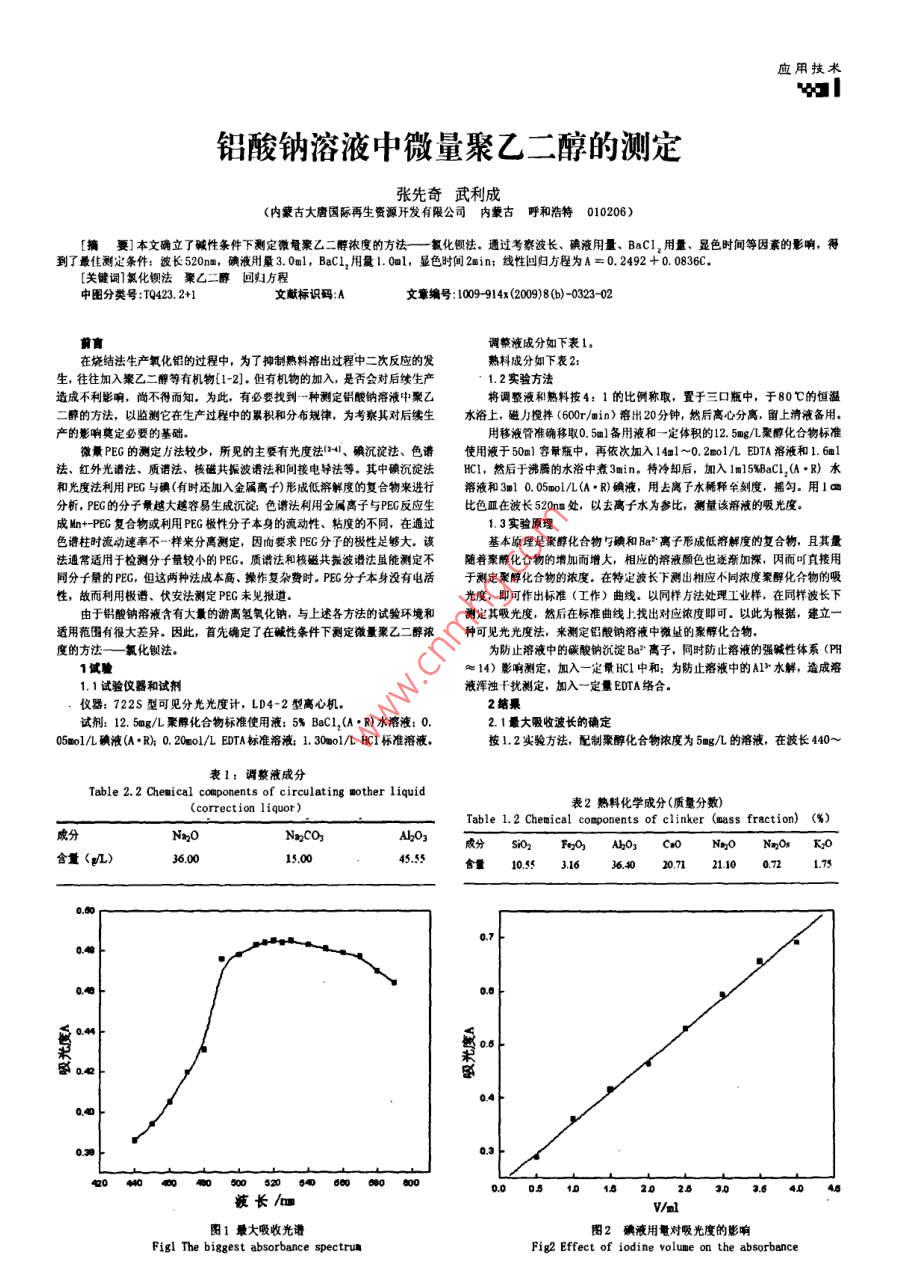 鋁酸鈉溶液中微量聚乙二醇的測定