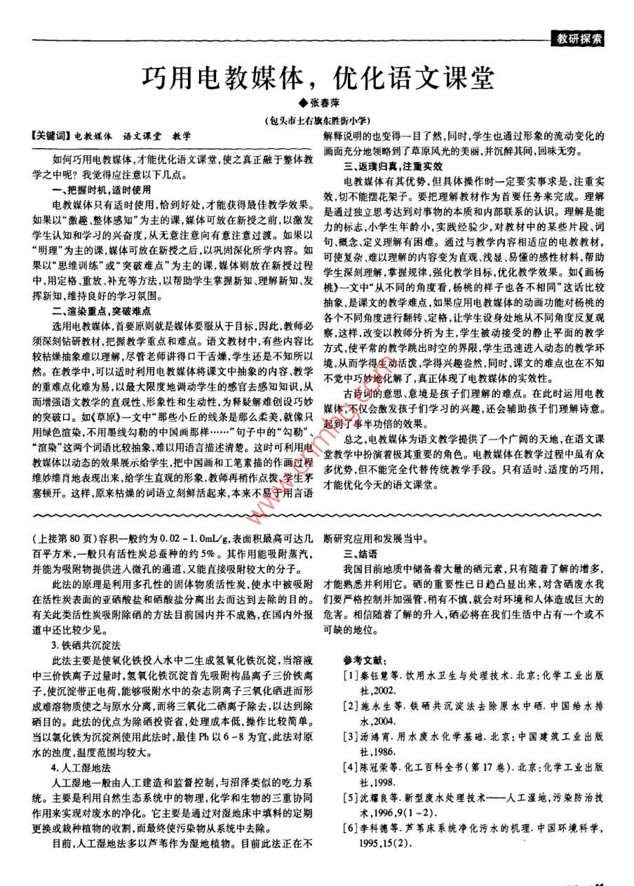 行業(yè)科淺述污水中硒的處理◆萬遠(yuǎn)超(孝感學(xué)院士木系)【摘要】隨著首屆“國際硒與環(huán)境和人體健康大會(huì)”的開暮,硒在環(huán)表明,硒對(duì)人類健康至關(guān)重要。境和健康領(lǐng)域已受到了更多人的關(guān)注。本文就硒的各種性能及目3.硒雖然有很多好處,但任何食物過量都會(huì)對(duì)人體產(chǎn)生危害,前國內(nèi)污水中曬處理的常用技術(shù)進(jìn)行了一些探討,希望在我們的生硒也一樣。持續(xù)攝入高硒食物、水等可導(dǎo)致硒在體內(nèi)蓄積而引起活中硒能被更好的熟知與利用。硒中毒?!娟P(guān)鍵詞】微量元素健康處理法慢性硒中毒動(dòng)物的特征是脫毛、畸形和肝硬化。急性硒中毒的特征是脫發(fā)、脫指甲(趾甲)、皮疹、周圍神經(jīng)病、牙齒顏色呈斑駁一、硒之初認(rèn)識(shí)1.硒作為一種化學(xué)元素是1818年由瑞土化學(xué)家發(fā)是克山病流行區(qū)的100倍如果每日攝入硒40-800gkg就現(xiàn)的。硒的原子序數(shù)為34,單質(zhì)硒有三種同素異形體可導(dǎo)致急性中毒。品體硒和金屬曬。無定行硒粉末的顏色是從深紅色到黑色,在50過量硒可引起DAN堿基替換增加誘發(fā)染色體畸變及外周血60℃溫度下軟化,o℃時(shí)具有彈性。深紅色的晶體硒熔點(diǎn)為淋巴細(xì)胞姐妹染色體互換頻繁升高。高濃度的曬可產(chǎn)生致突變作144℃。紅色晶體不很穩(wěn)定,加熱時(shí)可轉(zhuǎn)變?yōu)榉€(wěn)定的灰色晶體°用及對(duì)細(xì)胞內(nèi)遺傳物質(zhì)有損傷作用,甚至引起細(xì)胞癌變。硒,元素符號(hào)為Se,它是人體所必需的微量元素。人體是由各人體對(duì)硒的認(rèn)識(shí)是從中毒開始的。1934年美國農(nóng)業(yè)部在本國種化學(xué)元素組成的。目前已知天然存在的化學(xué)元素有9種在人的兩個(gè)農(nóng)業(yè)實(shí)驗(yàn)站發(fā)現(xiàn)導(dǎo)致動(dòng)物堿毒癥的原因是吃了含硒量高體內(nèi)已發(fā)現(xiàn)81種。元素是構(gòu)成人類生存環(huán)境的基本物質(zhì),也是構(gòu)的食物。194年美國曾報(bào)告過13人吃了一種補(bǔ)硒“健康食品”而成生物體的基本成份。人們通常根據(jù)元素在生物體中的含鼓將其發(fā)生曬中毒,其硒含高于標(biāo)簽所示的182倍。受害者攝入的總劃分為常量元素和微量元素。人類機(jī)體內(nèi)常量元素共11種:氧、硒量估計(jì)位27-2387mg。中毒病人出現(xiàn)惡心、嘔吐、頭發(fā)脫落指碳?xì)?、氮、鈣硫、磷、鈉、鉀、氯和鎂占人體總質(zhì)量的9%%,是甲變形、煩躁疲乏和外圍神經(jīng)病變體的造體元素。其余70余種元素僅占人體總質(zhì)量的0.05%,被20世紀(jì)60年代,在我國恩施市曾發(fā)生人食用高硒水果和糧食稱做微量元素。引起的中毒。其中毒特征為頭發(fā)、眉毛、指甲脫落、皮膚損傷、牙齒目前被世界公認(rèn)的人體必需微量元素有14種:鐵、銅、鋅、鈷、腐蝕和神經(jīng)系統(tǒng)異常錳、鉻、鉬、鎳、釩、錫、硅、硒碘氟。硒是人和動(dòng)物活動(dòng)中最重要4硒的所有化合物都為劇毒物。硒有毒,它的所有化合物均的微量元素之一。無論動(dòng)物或人類硒主要經(jīng)胃腸道吸收吸收后屬劇毒物。曬的化合物掉在皮膚上會(huì)產(chǎn)生斑疹。曬中毒后,人會(huì)的硒經(jīng)血漿運(yùn)載進(jìn)入各組織主要分布于腎、肝、胰腺、垂體及毛感到頭痛,長期喪失嗅覺不辨香臭,牛羊吃了含硒較多的牧草會(huì)發(fā)而肌肉、骨骼和血液相對(duì)較低,脂肪中最少。硒的營養(yǎng)保健作掉毛、軟蹄??傊?硒是一種可造成公害的毒性物質(zhì)。用抗氧化抗衰老抗輻射抗病毒保護(hù)視力提高人體免疫力。二、含硒廢水的一般處理法硒是人體免疫調(diào)節(jié)營養(yǎng)素既能激活細(xì)胞免疫中淋巴細(xì)胞又能刺1離子交換法激免疫球蛋白及抗體產(chǎn)生。免疫調(diào)節(jié)作用是通過抗氧化劑輔酶此為處理工業(yè)含硒廢水的常用方法。此法原理為:離子交換Q半胱氨酸維生素E來完成而這些都要在硒的參與下才能激法除硒是利用陰離子樹脂與含硒原水充分接觸,交換樹脂有選擇活缺硒必然導(dǎo)致免疫力下降各類疾病相繼出現(xiàn)。2003年美國食的吸收水中的硒酸根離子,從而達(dá)到去除水中硒的目的。影響其品藥品管理局(FDA)明示:“硒能降低患癌風(fēng)險(xiǎn)”和“硒可在人體去除效率的主要因素有原水PH;原水溫度;原水濁度;持續(xù)時(shí)間。內(nèi)產(chǎn)生抗癌變作用”。利用此法去除硒不僅效果好操作簡單,而且水中殘留硒濃度2硒的解毒、排毒及對(duì)人體健康的因素。硒與金屬的結(jié)合力低能滿足水質(zhì)標(biāo)準(zhǔn)的規(guī)定含量。通過諸多比較發(fā)現(xiàn),201×強(qiáng)堿很強(qiáng)能抵抗鎘對(duì)腎、生殖腺和中樞神經(jīng)的毒害。硒與體內(nèi)的汞、性陰離子交換樹脂是較理想的除硒交換劑它交換速度快,工作效鉛、錫、鉈等重金屬結(jié)合,形成金屬硒蛋白復(fù)合而解毒排毒。率高對(duì)亞硒酸根離子的親和力較大,交換容量較高。它屬于Fre除此之外,硒還能防治肝病、保護(hù)肝臟undlich吸附模型。一般經(jīng)處理后可得到SeO2白色粉末。此為最我國醫(yī)學(xué)專家于樹玉歷經(jīng)16年的肝癌高發(fā)區(qū)流行病學(xué)調(diào)查常見工業(yè)廢水處理法。中發(fā)現