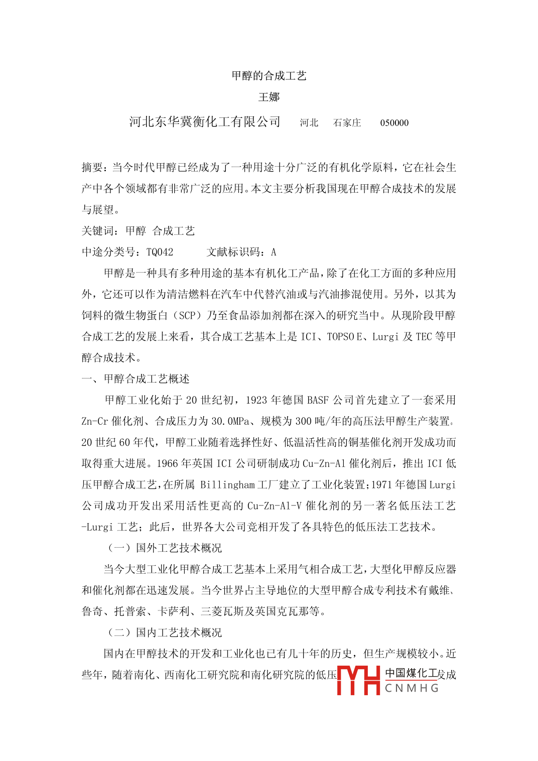 Lurgi和ICI低壓甲醇合成工藝比較 2020-06-12