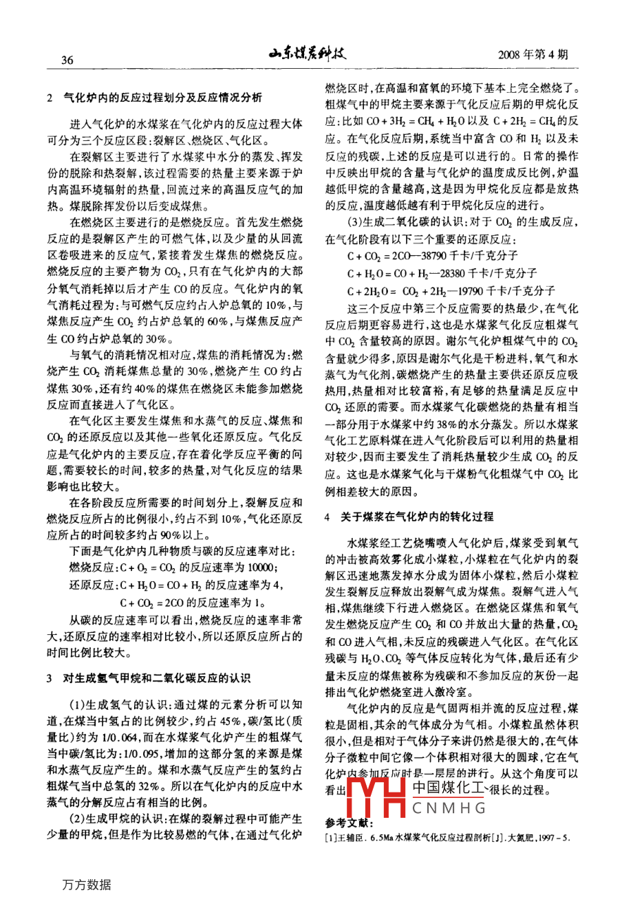 對(duì)水煤漿氣化反應(yīng)的認(rèn)識(shí)