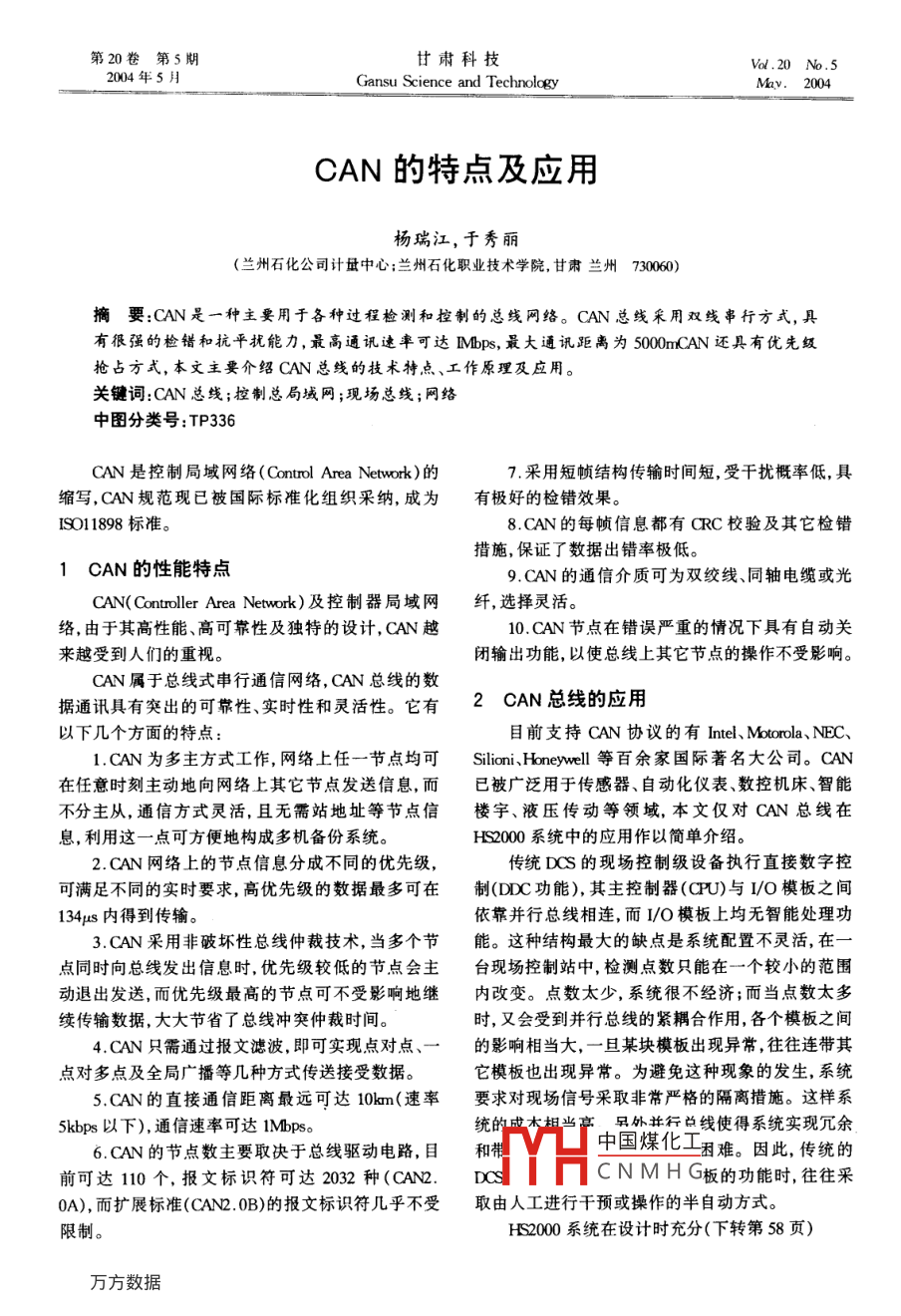 CAN的特點(diǎn)及應(yīng)用