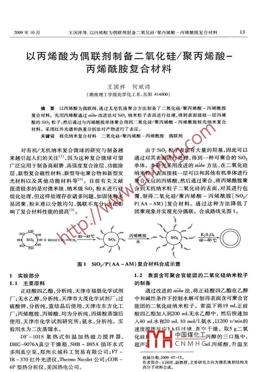 以丙烯酸為偶聯(lián)劑制備二氧化硅/聚丙烯酸-丙烯酰胺復(fù)合材料