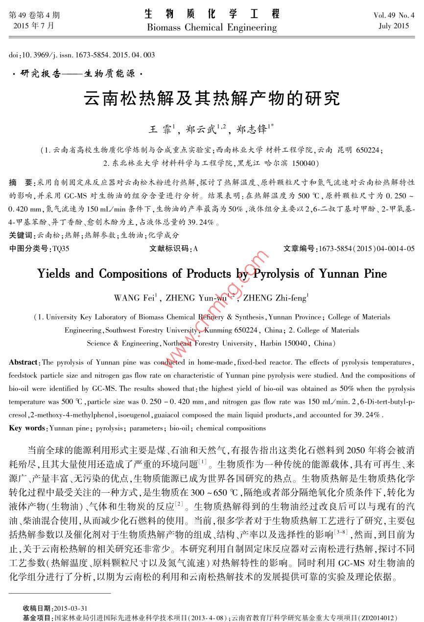 - 期刊名字:生物質(zhì)化學(xué)工程