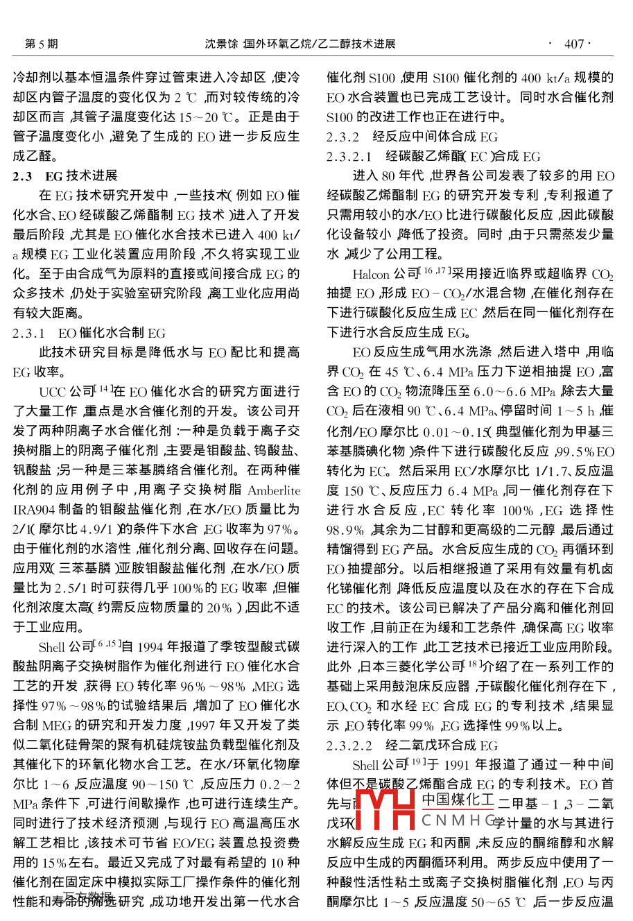 國外環(huán)氧乙烷/乙二醇技術(shù)進(jìn)展
