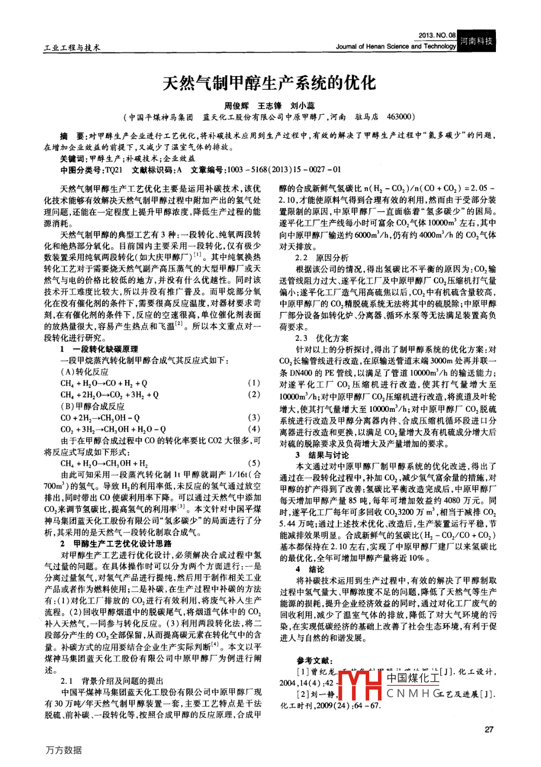 - 作者單位:中國平煤神馬集團(tuán) 藍(lán)天化工股份有限公司中原甲醇廠