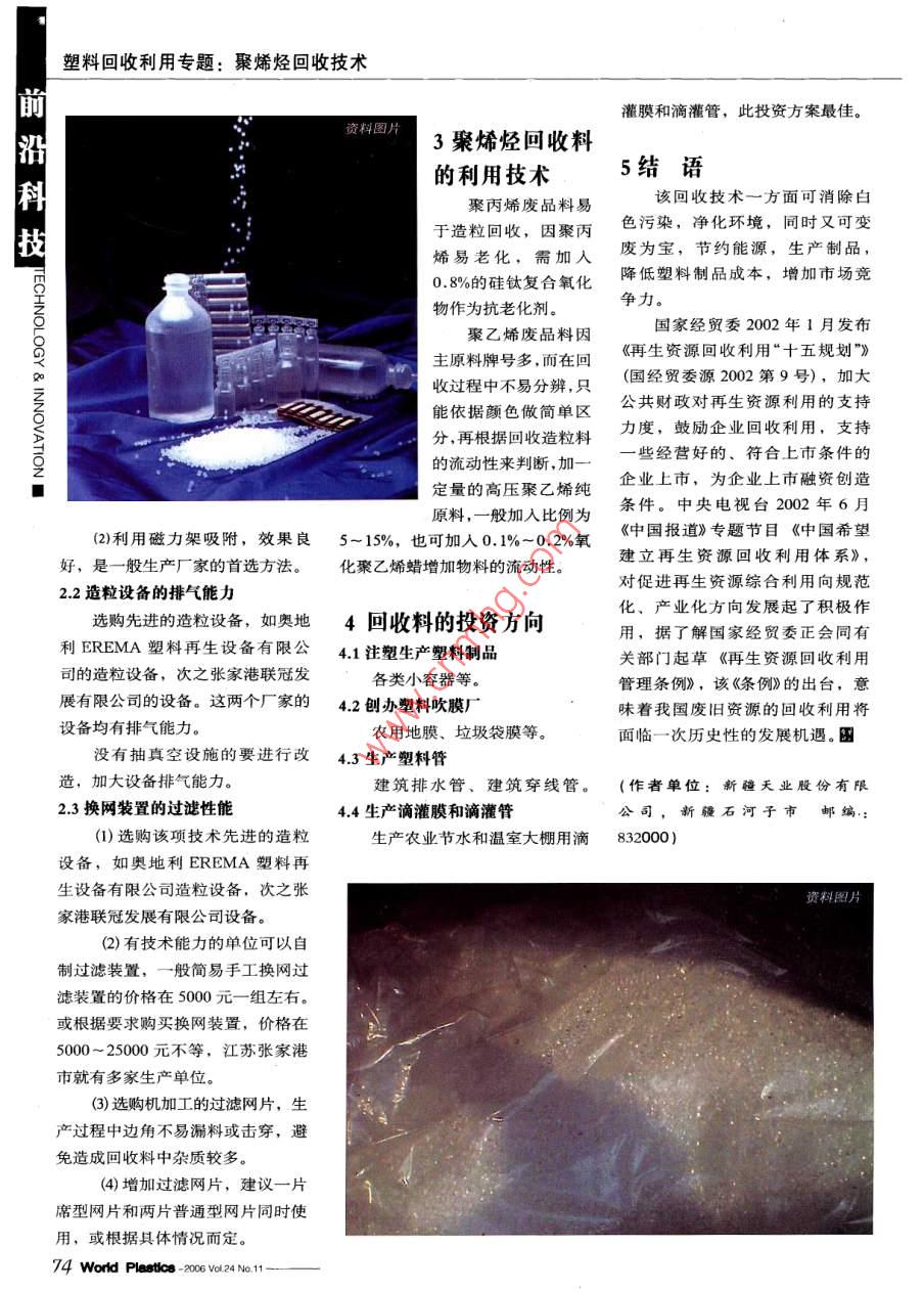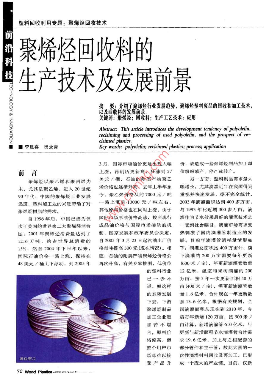 聚烯烴回收料的生產(chǎn)技術(shù)及發(fā)展前景