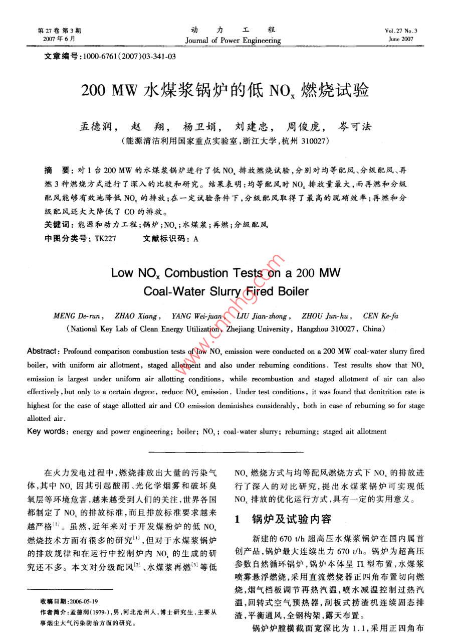 - 論文作者:孟德潤,趙翔,楊衛(wèi)娟,劉建忠,周俊虎,岑可法