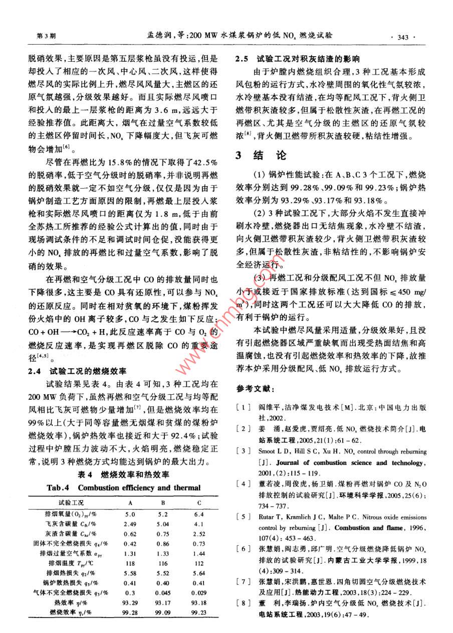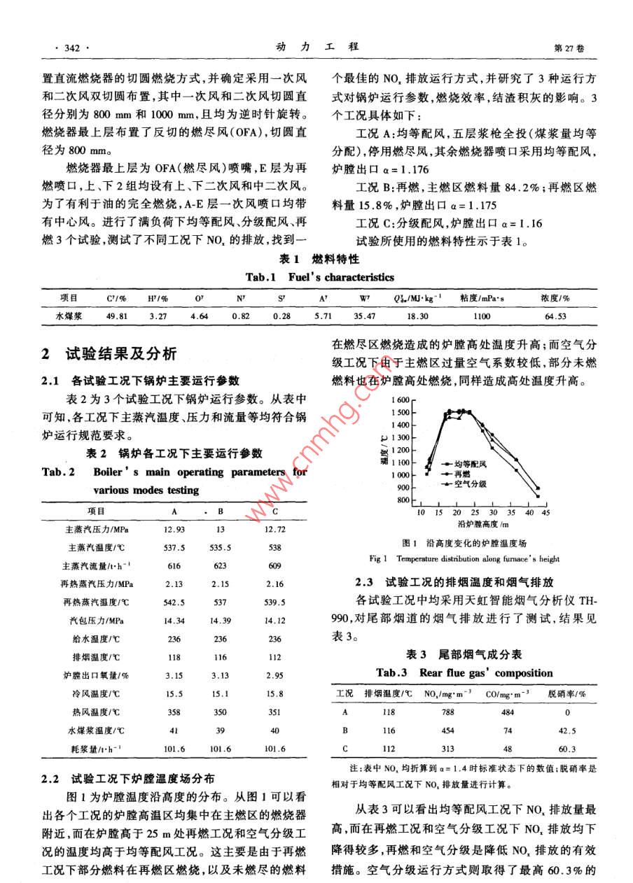 200 MW水煤漿鍋爐的低NOx燃燒試驗