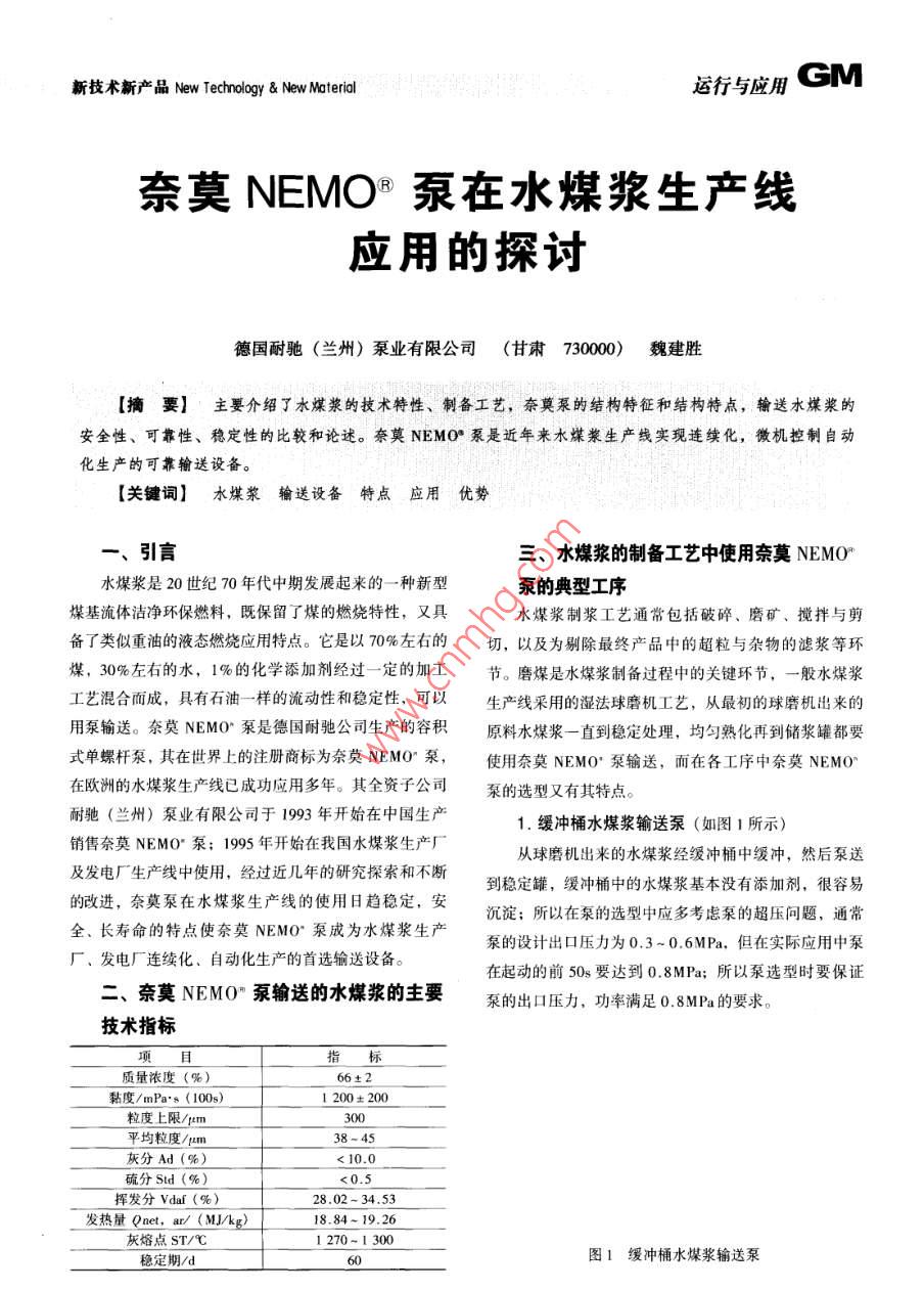 奈莫NEMO(R)泵在水煤漿生產(chǎn)線應(yīng)用的探討