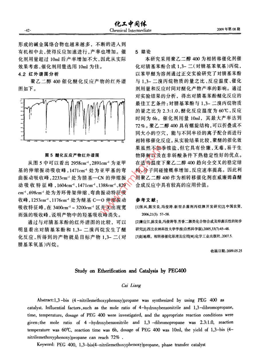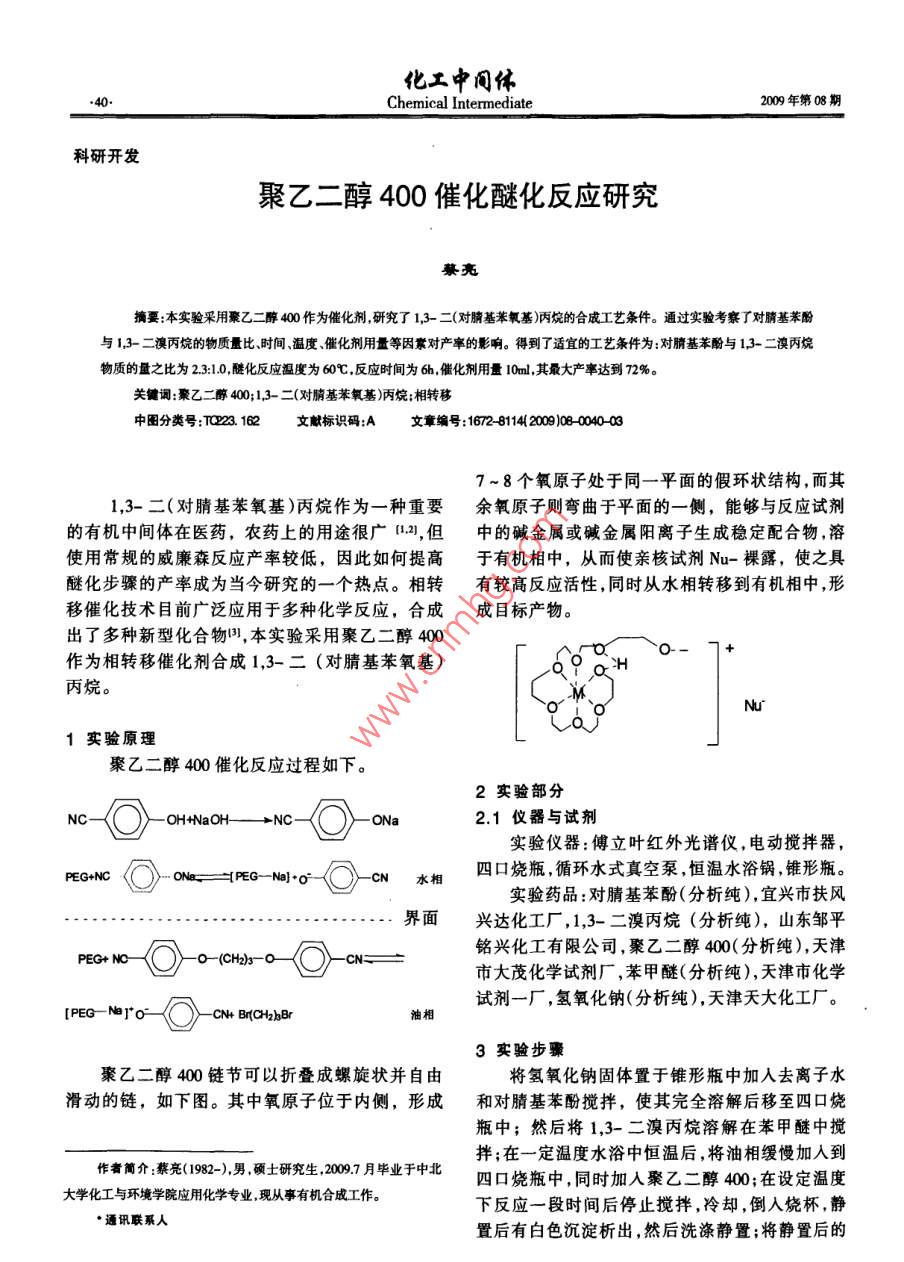 聚乙二醇400催化醚化反應(yīng)研究
