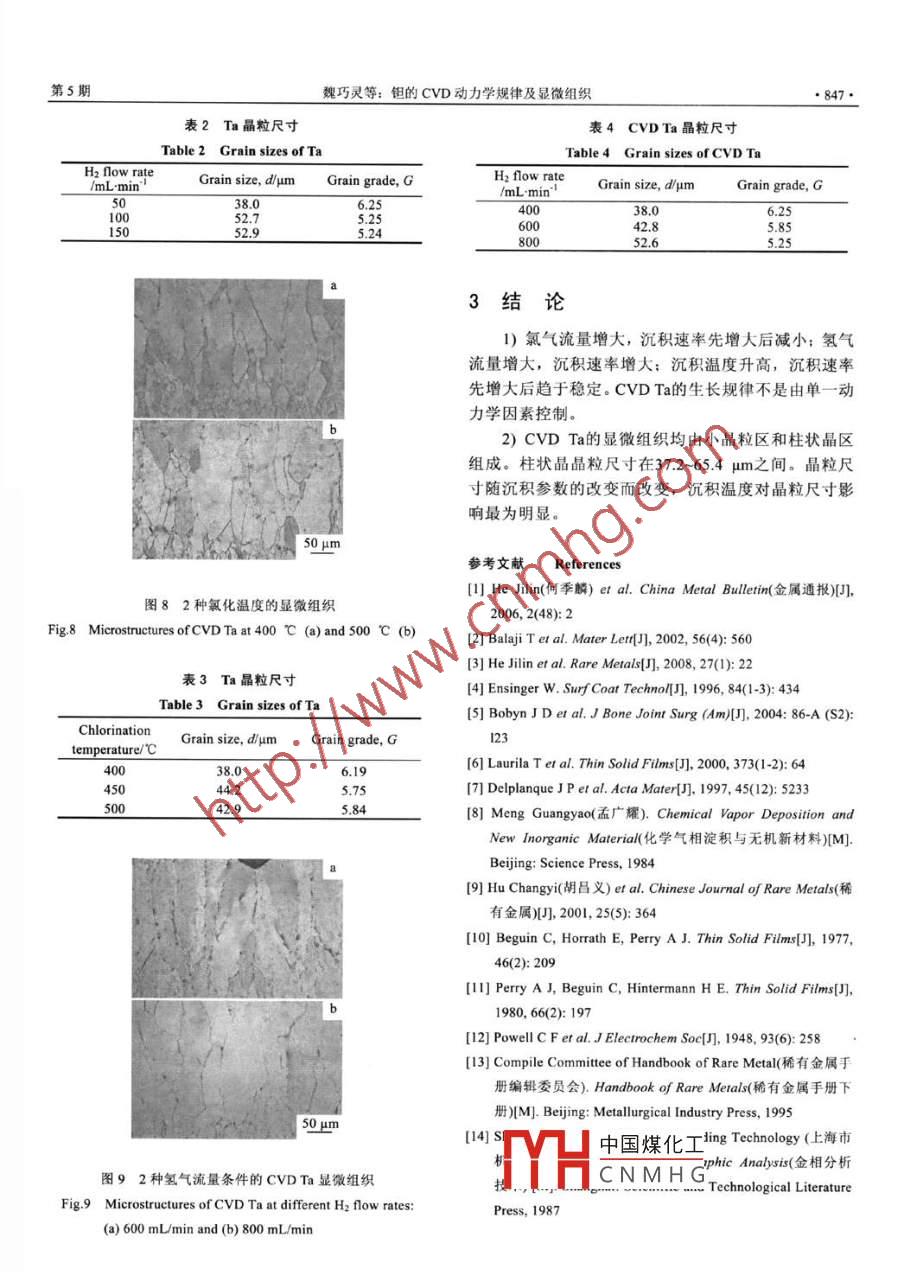 鉭的CVD動(dòng)力學(xué)規(guī)律及顯微組織