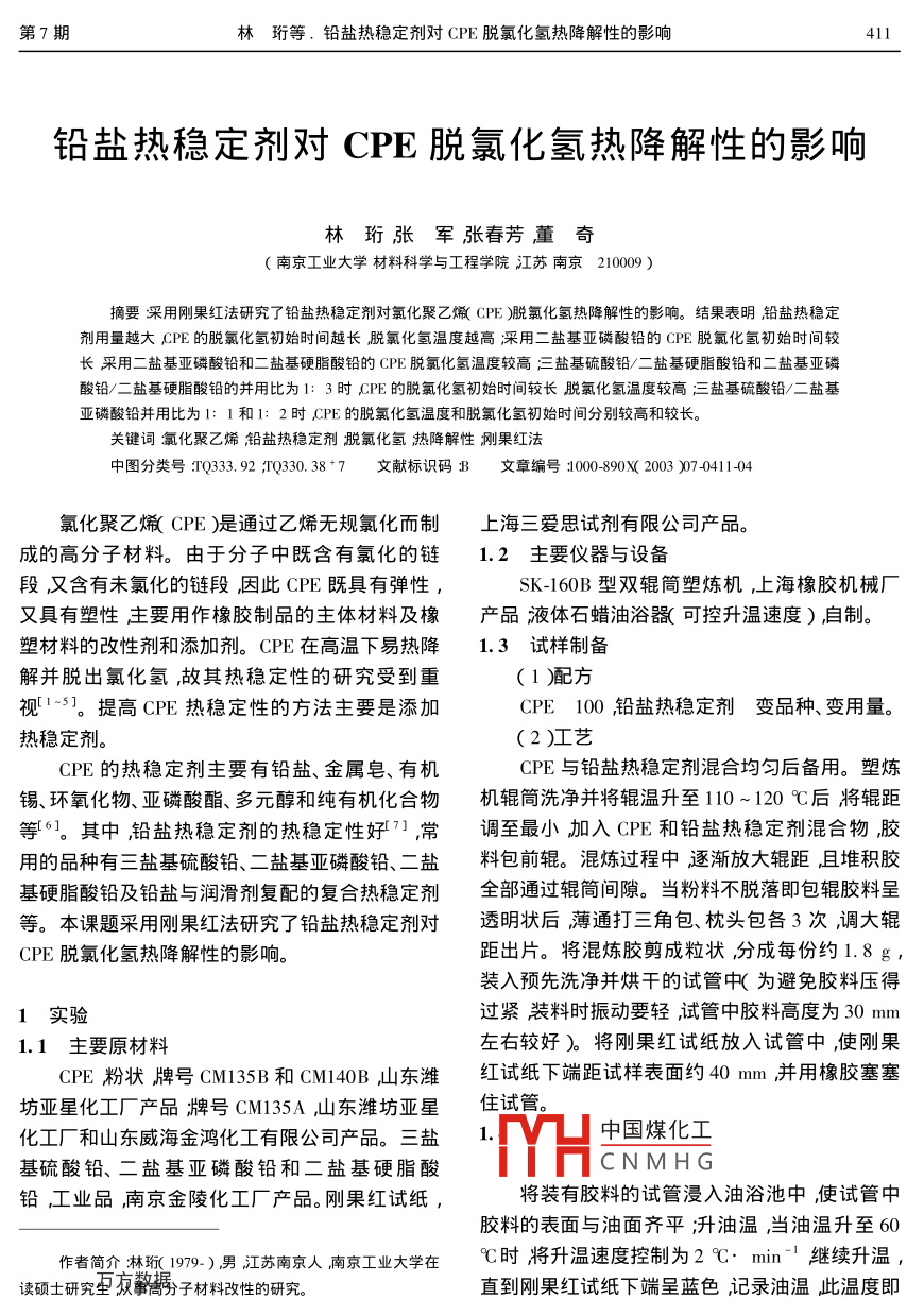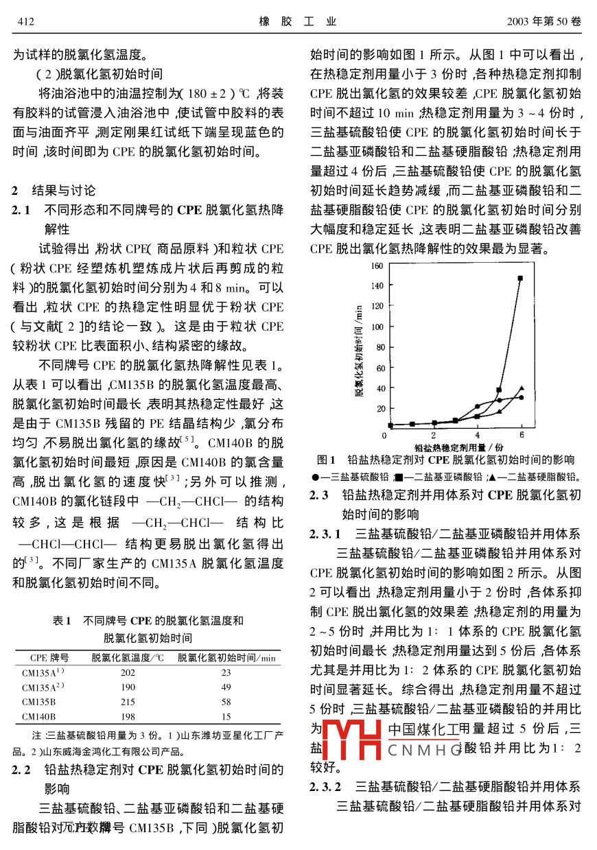 鉛鹽熱穩(wěn)定劑對CPE脫氯化氫熱降解性的影響