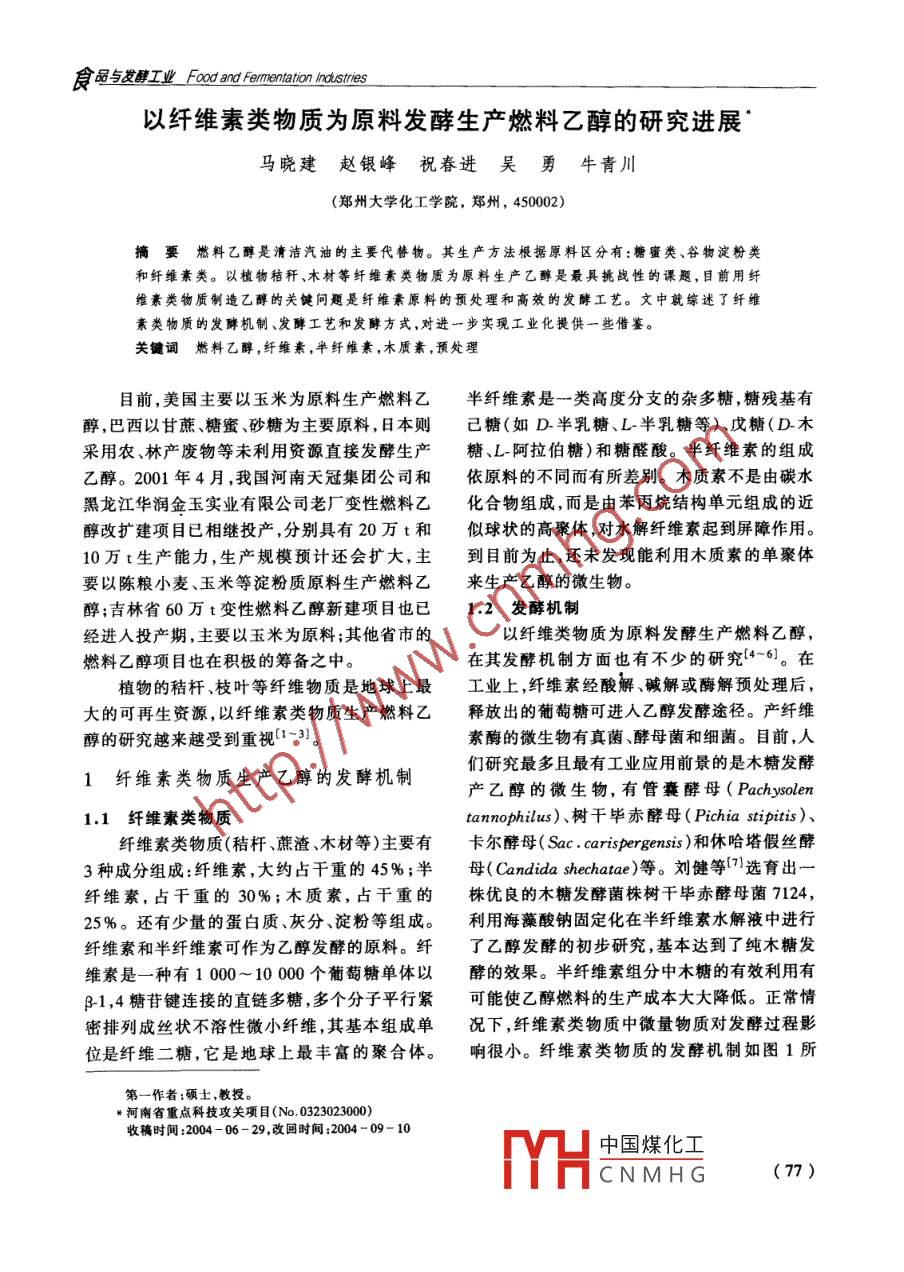 以纖維素類物質(zhì)為原料發(fā)酵生產(chǎn)燃料乙醇的研究進(jìn)展