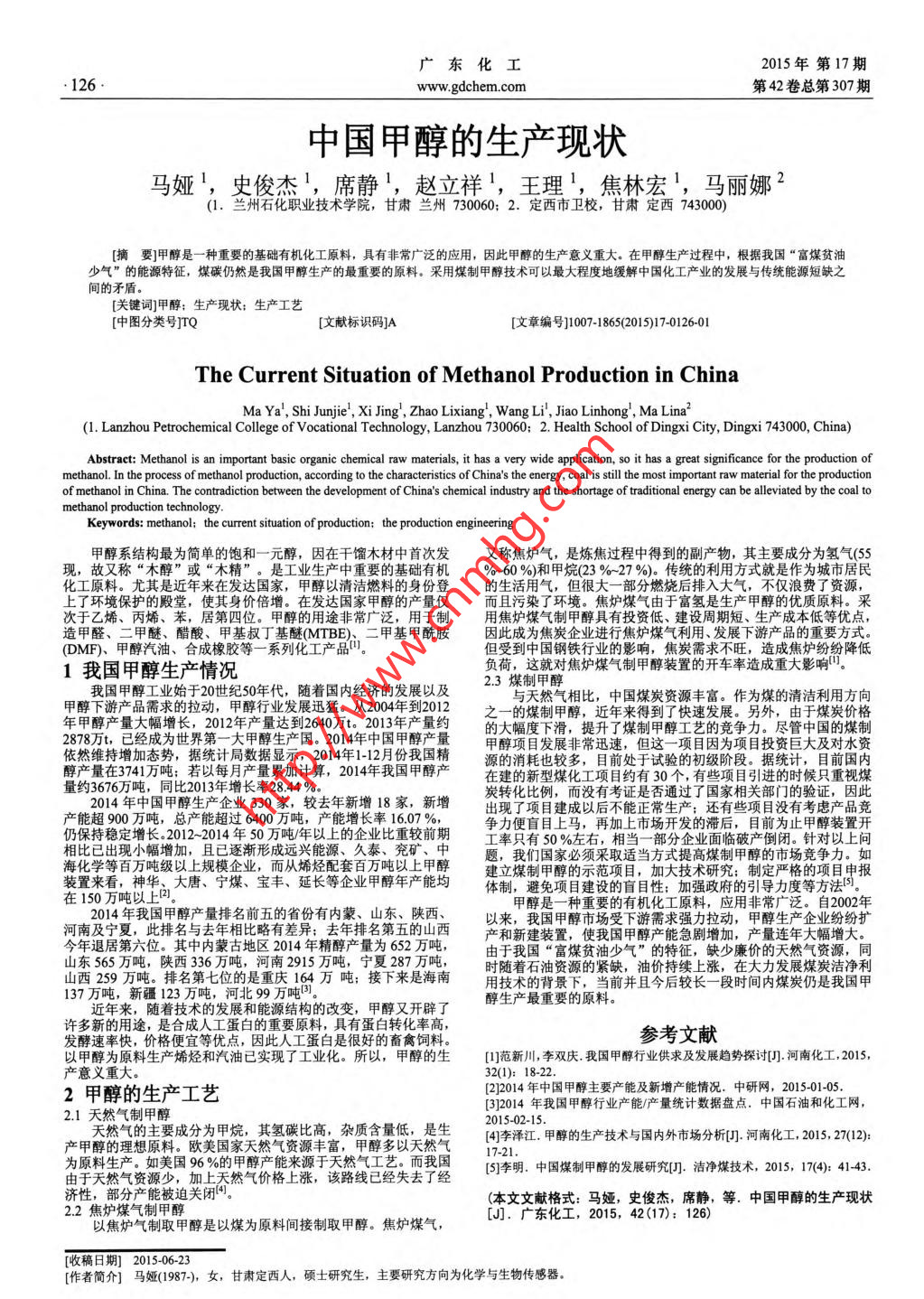 中國甲醇的生產(chǎn)現(xiàn)狀
