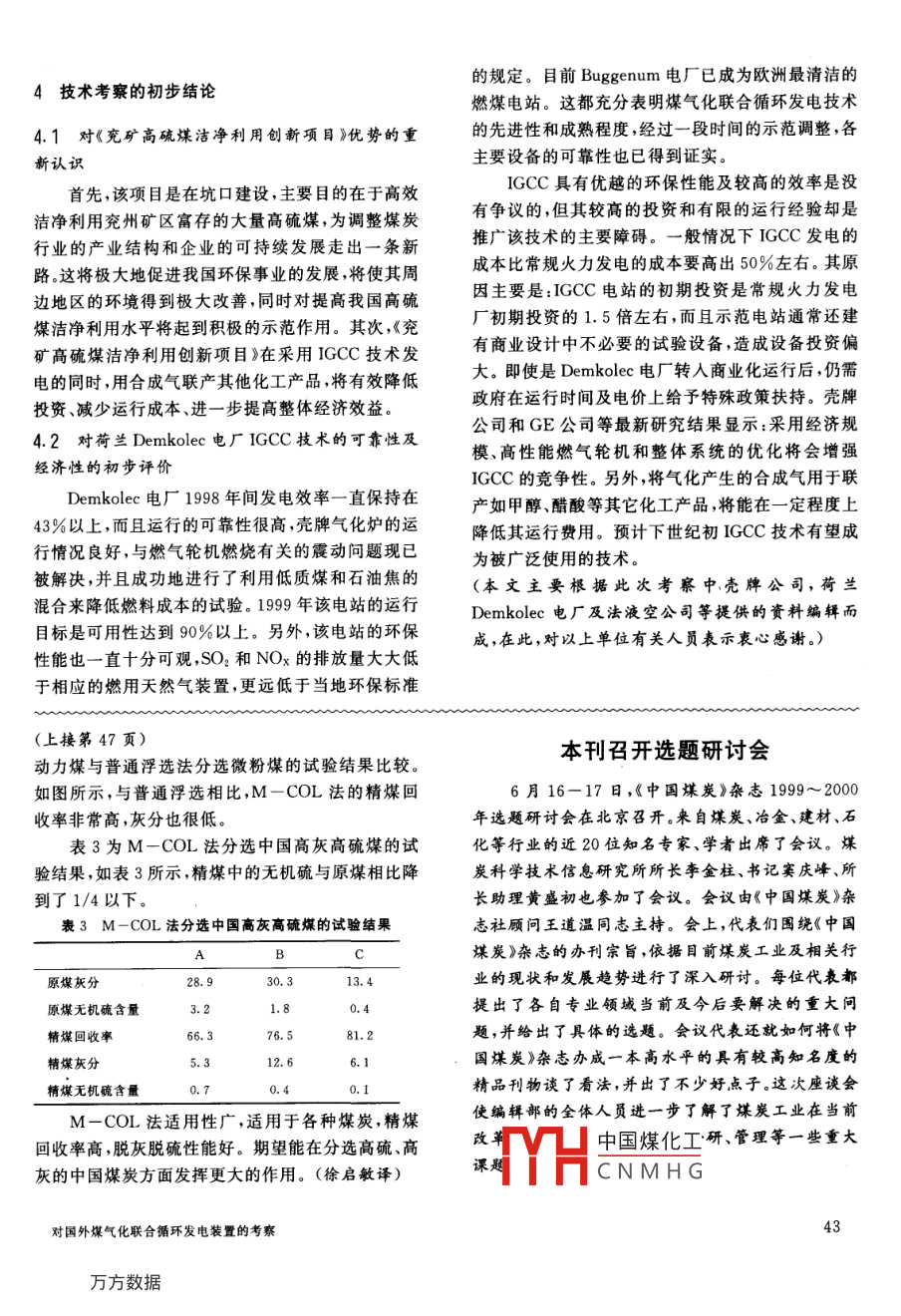 對(duì)國外煤氣化聯(lián)合循環(huán)發(fā)電裝置的考察