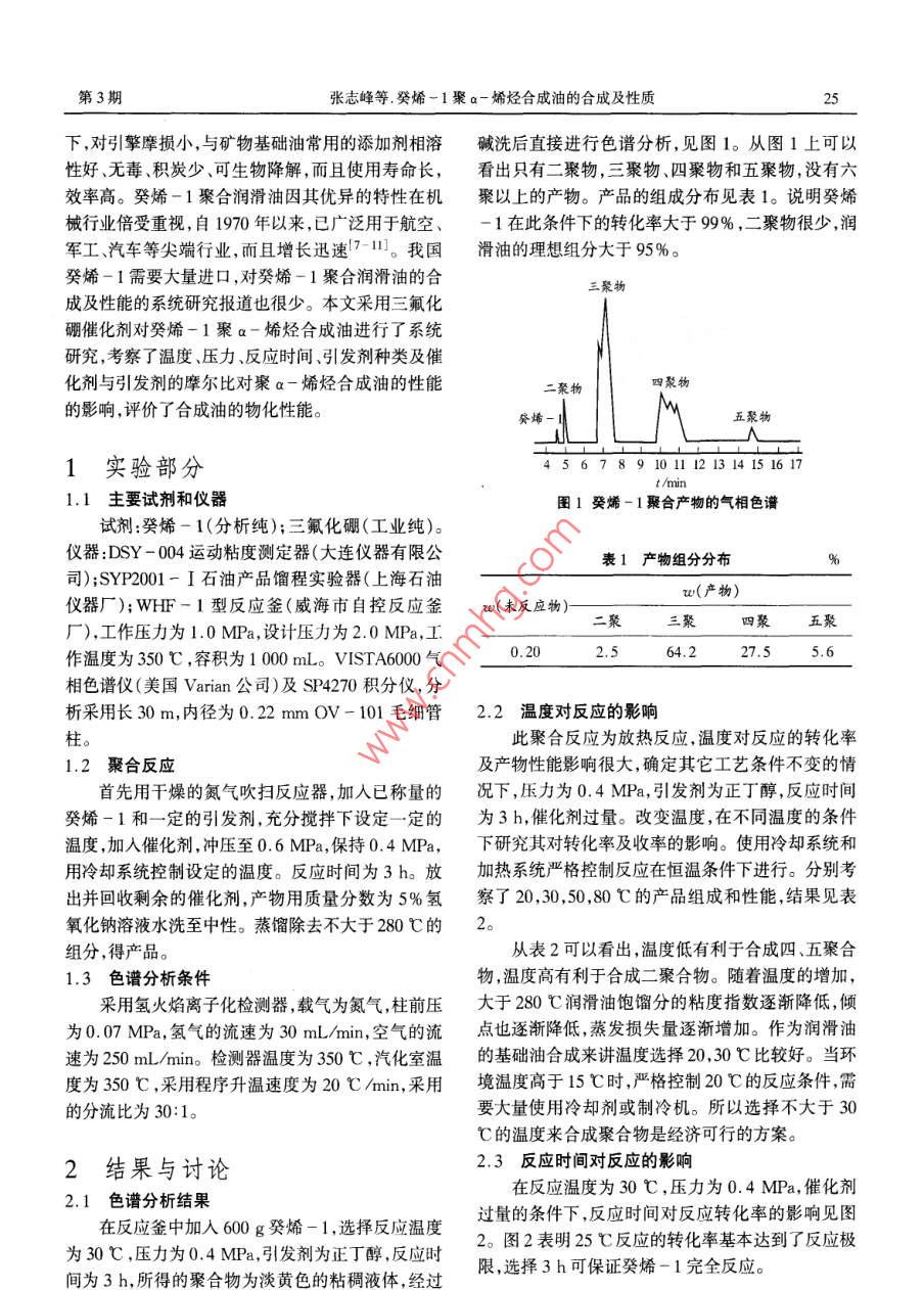 癸烯-1聚α-烯烴合成油的合成及性質(zhì)