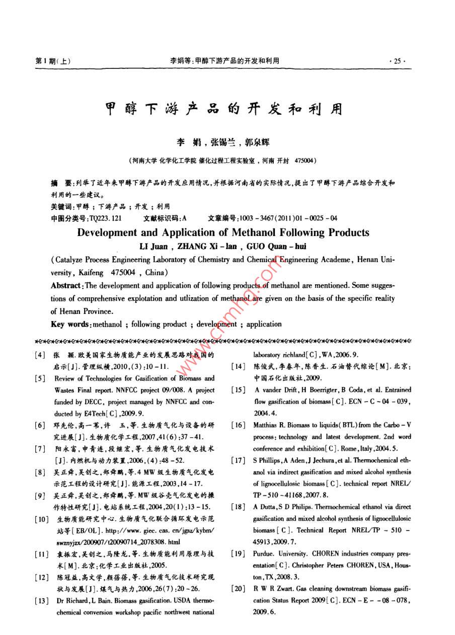 - 期刊名字:河南化工