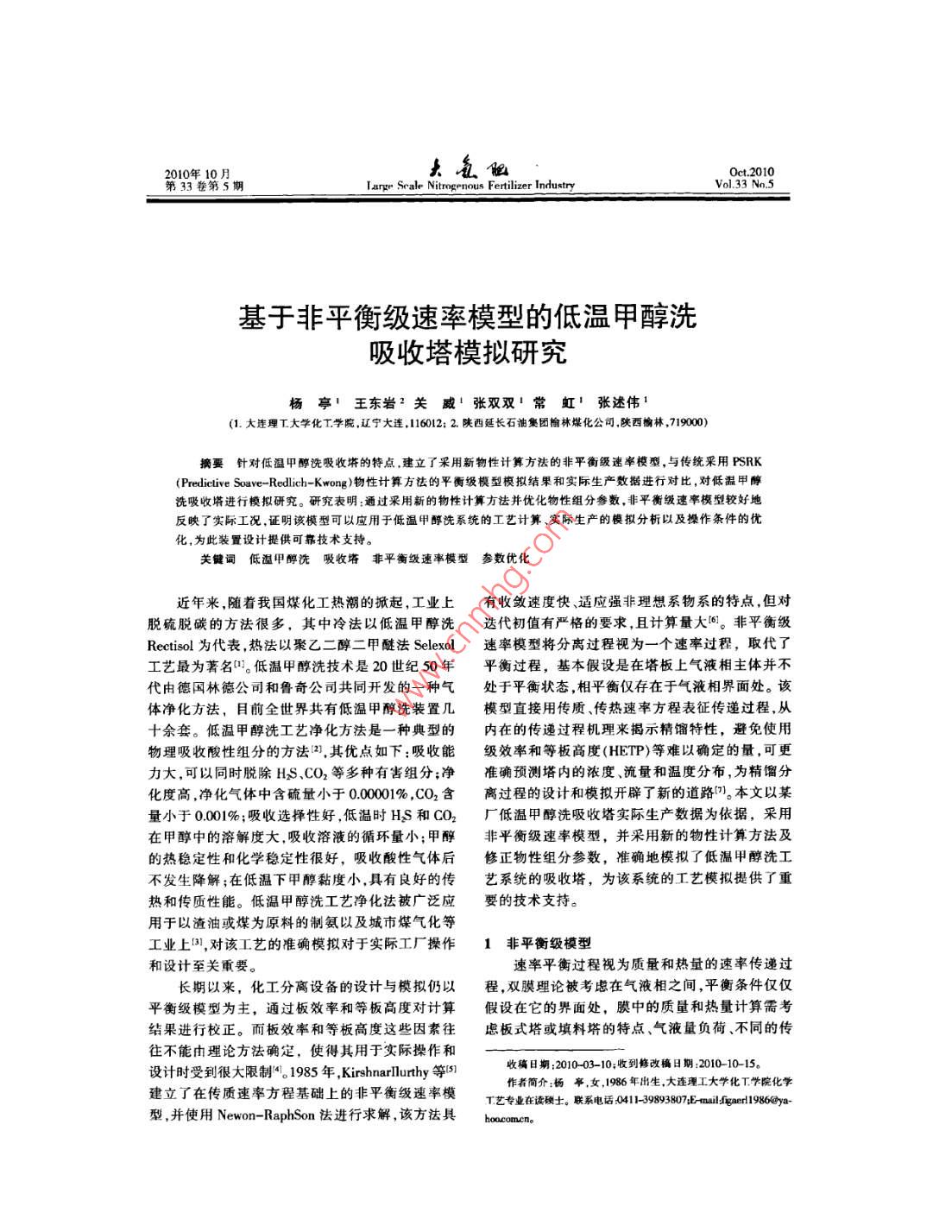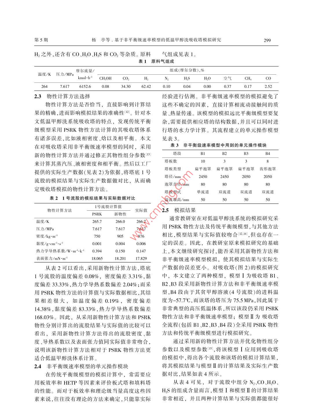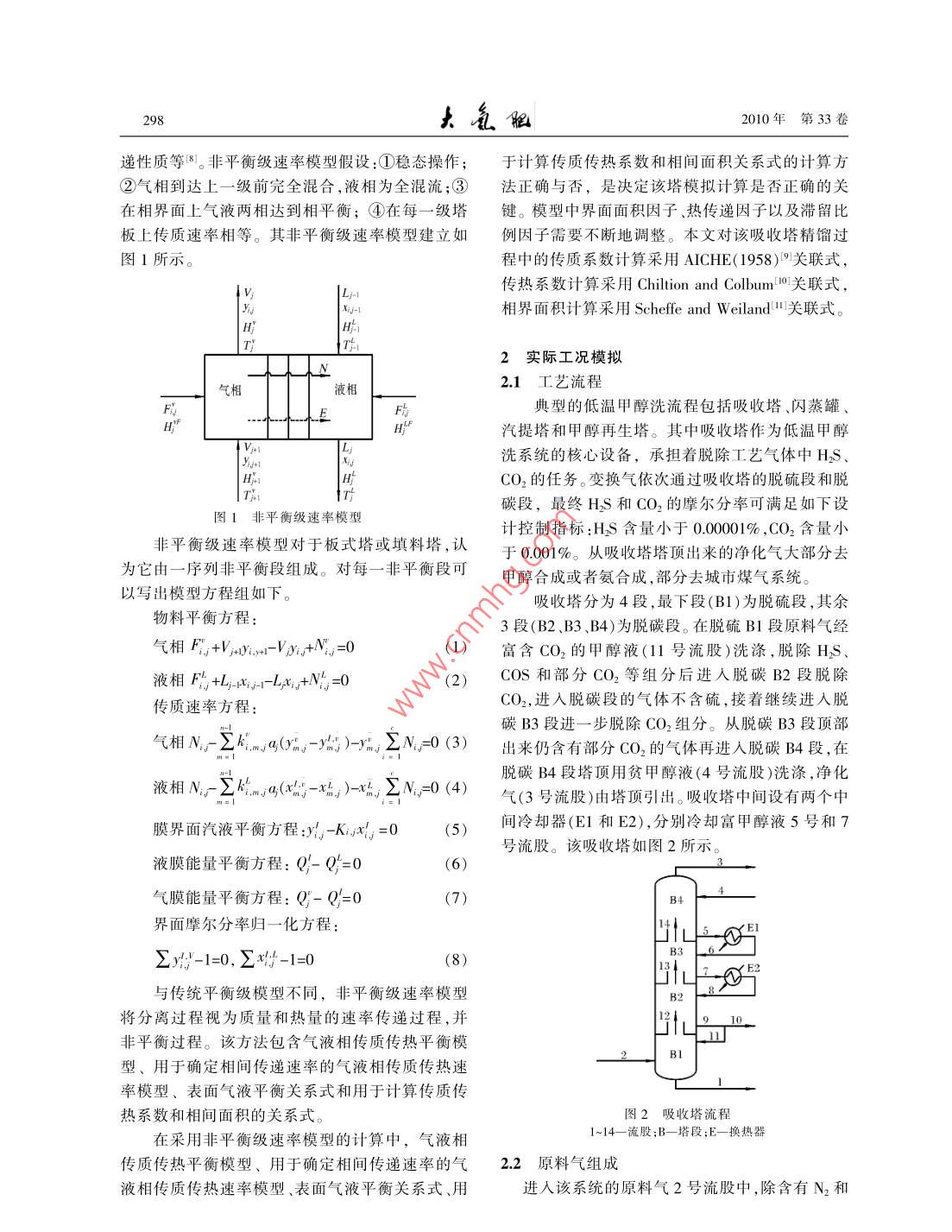 基于非平衡級(jí)速率模型的低溫甲醇洗吸收塔模擬研究