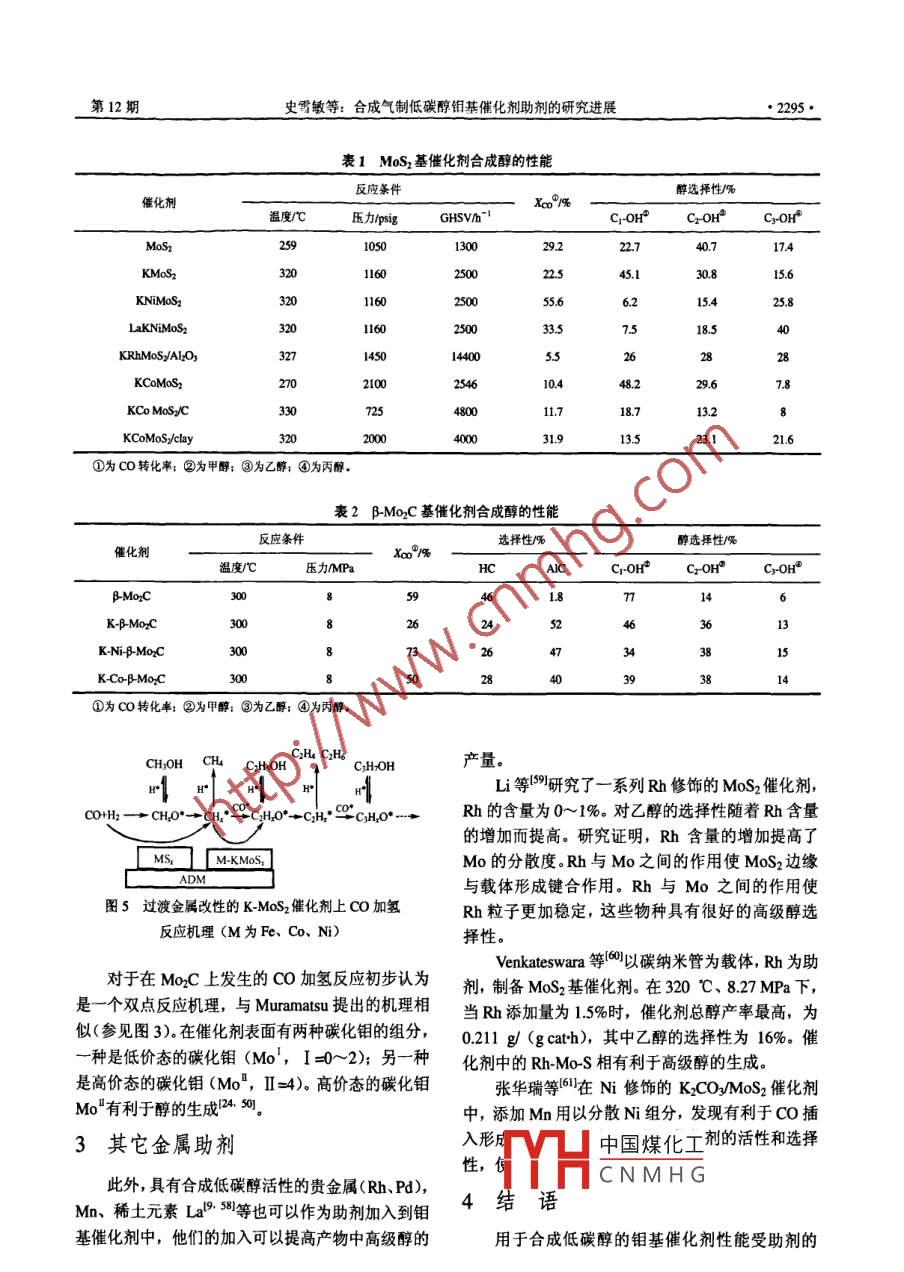 合成氣制低碳醇鉬基催化劑助劑的研究進(jìn)展