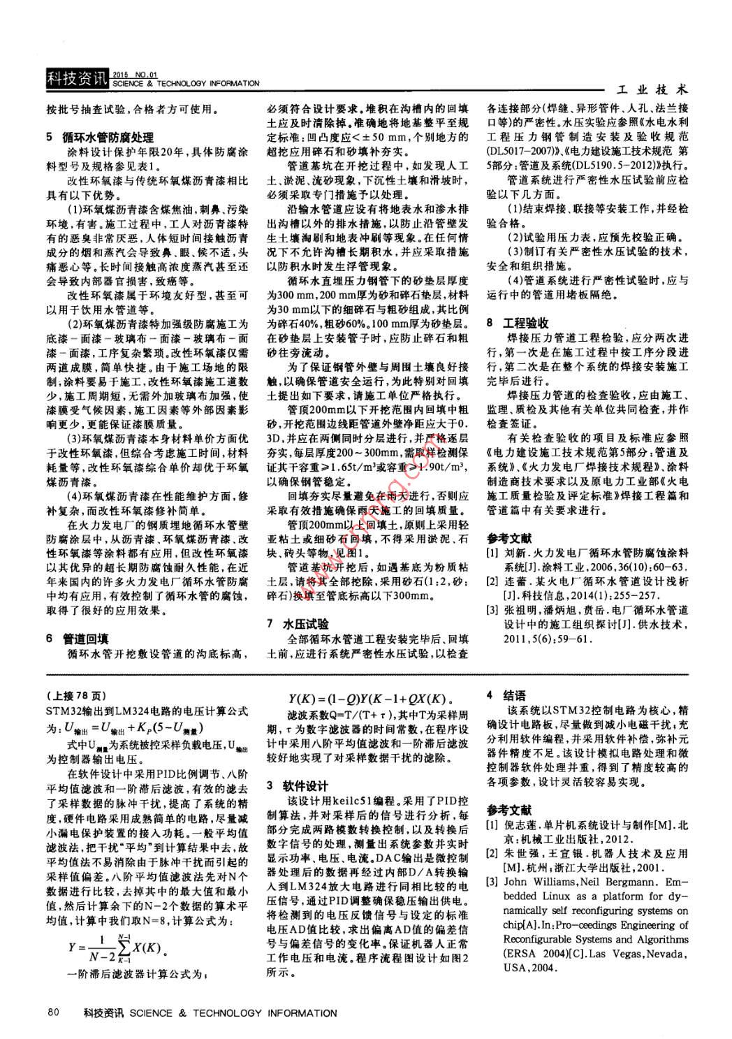 工業(yè)技術(shù)ScIENCE TECHNOLOGY38科技資訊電廠循環(huán)水管道的相關(guān)設(shè)計王蘭!李學(xué)民2王淑紅(1.中機(jī)國能電力工程有限公司上海200061;2中國建筑第二工程局有限公司上海200135)摘要:電廠橋環(huán)水管用于向主廠房內(nèi)的礙汽器輸送冷柙水,并將換熱后的排水輸送至冷卻設(shè)施?;痣姀S循環(huán)水菅道的設(shè)計,包括管道在總平面中的定位、管徑及管材的確定、管遁壁厚和加肋的設(shè)計及循環(huán)水管道附爲(wèi)謾施的設(shè)計。相對電廠內(nèi)其他廠區(qū)管道而言,循環(huán)水管遁管徑及埋深較大,應(yīng)力求管線長度最短,水力損失最小,以減小循環(huán)水泵功率及降低運行費用,該文茼述了某電廠循環(huán)水管道的設(shè)計工藝,并通過經(jīng)濟(jì)枝術(shù)對比介紹了改性環(huán)氧溱在電廠循環(huán)水管道腐中的應(yīng)用。關(guān)鍵字:循環(huán)水管環(huán)氧煤瀝青溱改性環(huán)氧溱回填水壓試驗中圖分類號:TU27文獻(xiàn)標(biāo)識碼:A文章編號:1672-3791(2015)01(a)-0079-02電廠中凝汽器的低溫狀態(tài)是由冷卻水狀態(tài),冷卻水經(jīng)淋水填料冷卻后,由回水溝風(fēng)冷卻塔一循環(huán)水回水溝一循環(huán)水泵房循環(huán)來保證的,冷卻水的冷卻過程是電力回到循環(huán)水泵入口;冬季運行時,在熱泵未生產(chǎn)中十分重要的過程。循環(huán)水管承擔(dān)了投入使用時,循環(huán)水正常上塔運行,在氣溫2循環(huán)水進(jìn)排水管溝布置電廠冷卻水載體的功能,至關(guān)重要,該文就較低時,開啟DN1400旁路管閥門,關(guān)閉循環(huán)水鋼管采用Q235B材質(zhì),內(nèi)外壁均某電廠循環(huán)冷卻水系統(tǒng)循環(huán)水管的相關(guān)設(shè)DN2400上塔管閥門,回水直接進(jìn)入冷卻塔采用防腐涂料保護(hù),并考慮2mm腐蝕余量。計做個介紹集水池,再由回水溝進(jìn)入循環(huán)水泵入口循環(huán)水進(jìn)水管自循泵房至廠區(qū)內(nèi)主廠循環(huán)冷卻水由設(shè)在循環(huán)水泵房內(nèi)的循房兩臺機(jī)組凝汽器進(jìn)口壓力鋼管采用2根系統(tǒng)描述環(huán)水泵提升后經(jīng)壓力管道送入凝汽器進(jìn)行管徑為DN2400,進(jìn)出主廠房的管道為某300MW電廠供水系統(tǒng)采用以自然通熱交換。夏季運行時,經(jīng)熱交換后的循環(huán)冷DN1800,排水管在A排前進(jìn)入排水總管,循風(fēng)冷卻塔為冷卻設(shè)備的擴(kuò)大單元制循環(huán)供卻水由循環(huán)水壓力管道送入冷卻塔進(jìn)行冷環(huán)水排水管將升溫后的水送至冷卻塔進(jìn)行水系統(tǒng)。每臺機(jī)組配l座自然通風(fēng)冷卻塔,2卻;冬季運行熱泵投入使用時,冷卻塔進(jìn)水冷卻,排水管規(guī)格及管材與壓力鋼管同。冷臺循環(huán)水泵。2臺機(jī)組在冷卻塔前合建1座閥門關(guān)閉,2臺機(jī)組循環(huán)水回水進(jìn)入熱泵機(jī)卻塔到循環(huán)水泵房采用排水溝循環(huán)水泵房,毎座冷卻塔至循環(huán)水泵房段組進(jìn)行熱交換。剩余循環(huán)水回水通過冷卻DN2400循環(huán)水鋼管壁厚均為14mm;采用2條回水溝??紤]到運行及檢修的靈活塔旁通管進(jìn)入冷卻塔水池,熱泵出水通過DN1800鋼管鋼管壁厚均為12mm。D2440性以及冷卻塔在冬季防凍的要求,在2臺機(jī)熱泵回水管排入冷卻塔回水溝。14循環(huán)水壓力鋼管:剛性環(huán)采用14a,剛性組循環(huán)水進(jìn)水管上及回水管上設(shè)聯(lián)絡(luò)管,2輔機(jī)冷卻水,從循環(huán)水給水管上吸取,環(huán)間距為2000mm,過道路段剛性環(huán)間距為座冷卻塔水池之間設(shè)聯(lián)絡(luò)溝經(jīng)過輔閉式冷卻系統(tǒng),進(jìn)行熱交換后,再由1000mm;D1840×12循環(huán)水壓力鋼管:剛性每臺機(jī)組冷卻塔設(shè)1根旁路壓力回水壓力管道送入冷卻塔進(jìn)行冷卻。環(huán)采用12.6a,剛性環(huán)間距為2000mm,過道管,管徑為DN1400。回水管入口處設(shè)置閥循環(huán)水系統(tǒng)流程為:循環(huán)水泵房一壓力路段剛性環(huán)間距為1000mm。門。夏季運行時,旁路管上的閥門處于關(guān)閉鋼管一凝汽器/開式水一排水管一自然通為防止附著物生長和繁殖,循環(huán)水需加氯處理,在冷卻塔回水溝設(shè)加氯點。3循環(huán)水管設(shè)計地面荷載道路段設(shè)計地面荷載按0.06MPa考慮。為此,現(xiàn)場需在施工重件過管、溝處采取路基箱等適當(dāng)保護(hù)措施,嚴(yán)格控制施工荷載<0.06MPa。非道路段設(shè)計地面荷載按0.02MPa考慮。4循環(huán)水管的焊接循環(huán)水管的鋼材采用Q235B,采用的電焊條可選用E4303,焊絲可選用H08MnA,或其他與母材的金屬性能和化學(xué)成分相當(dāng)且管環(huán)水昏基典型剖面圖工藝性能良好的型號,同樣需有出廠檢驗圖1循環(huán)水管基坑典型剖面圖合格證,若無此證或?qū)ζ滟|(zhì)量有懷疑時,應(yīng)表1涂料型號及規(guī)格部位品種涂料名稱干膜厚(um)稀釋劑埋地底漆Jotamastic87改性耐磨環(huán)氧漆3001道Jotun thinner 17鋼管Jotamastic87改性耐磨環(huán)氧漆300Jotun thinner 17外壁「 Total600共2道鋼管底漆Jotamastic87A改性耐磨環(huán)氧鋁粉漆250Thinner No. 1 7面漆Jotamastic87A改性耐磨環(huán)氧鋁粉漆Thinner No 17共2道科技資訊 SCIENCE& TECHNOL OGY INFORMATION79科技資訊改N工業(yè)技術(shù)按批號抽查試驗,合格者方可使用。必須符合設(shè)計要求。堆積在溝槽內(nèi)的回填各連接部分(焊縫