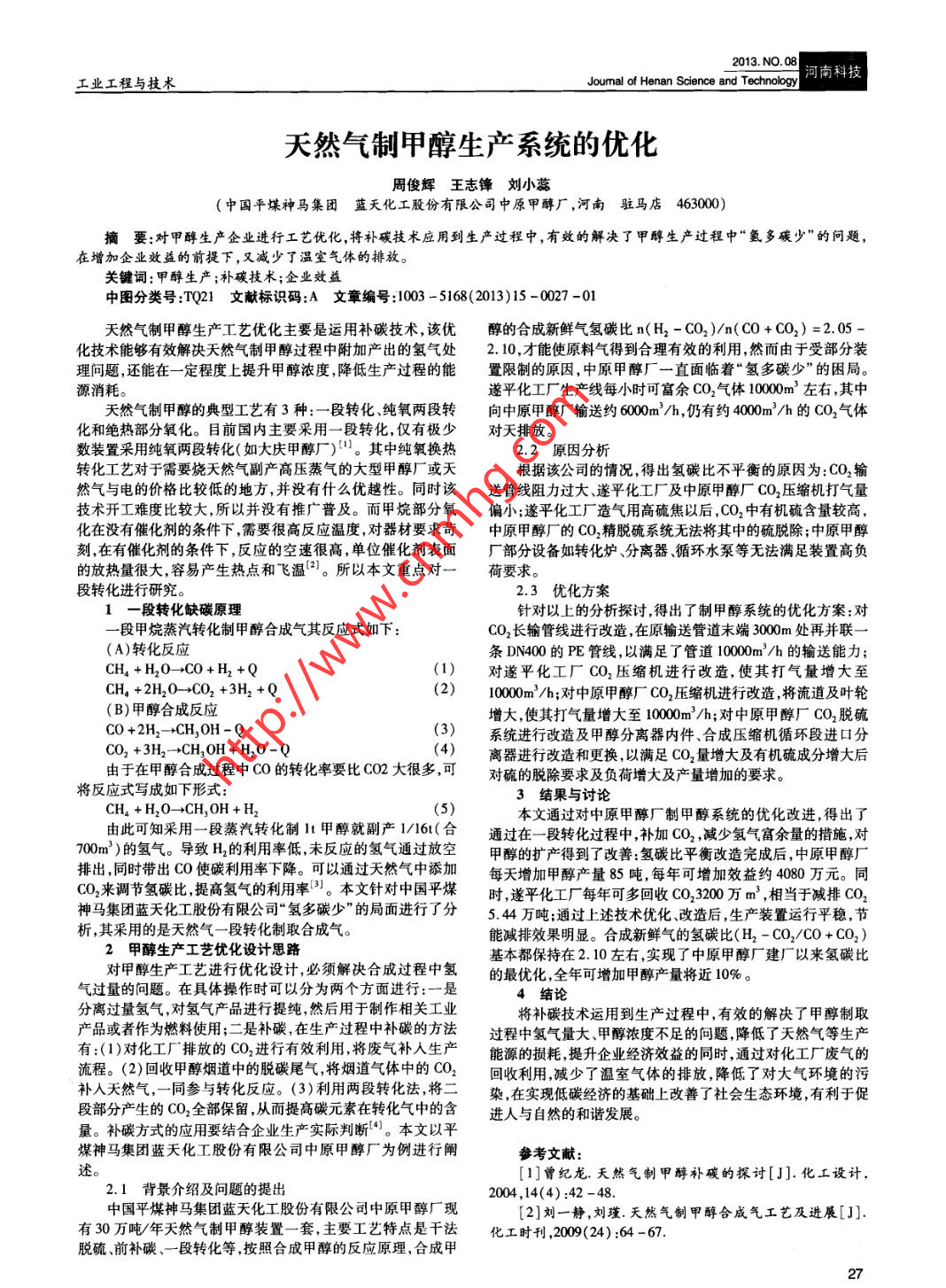 - 作者單位:中國平煤神馬集團 藍天化工股份有限公司中原甲醇廠