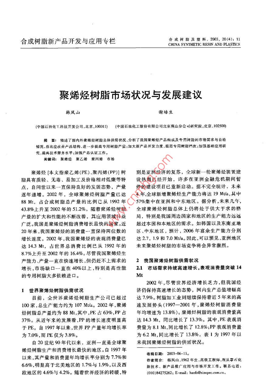 聚烯烴樹脂市場(chǎng)狀況與發(fā)展建議