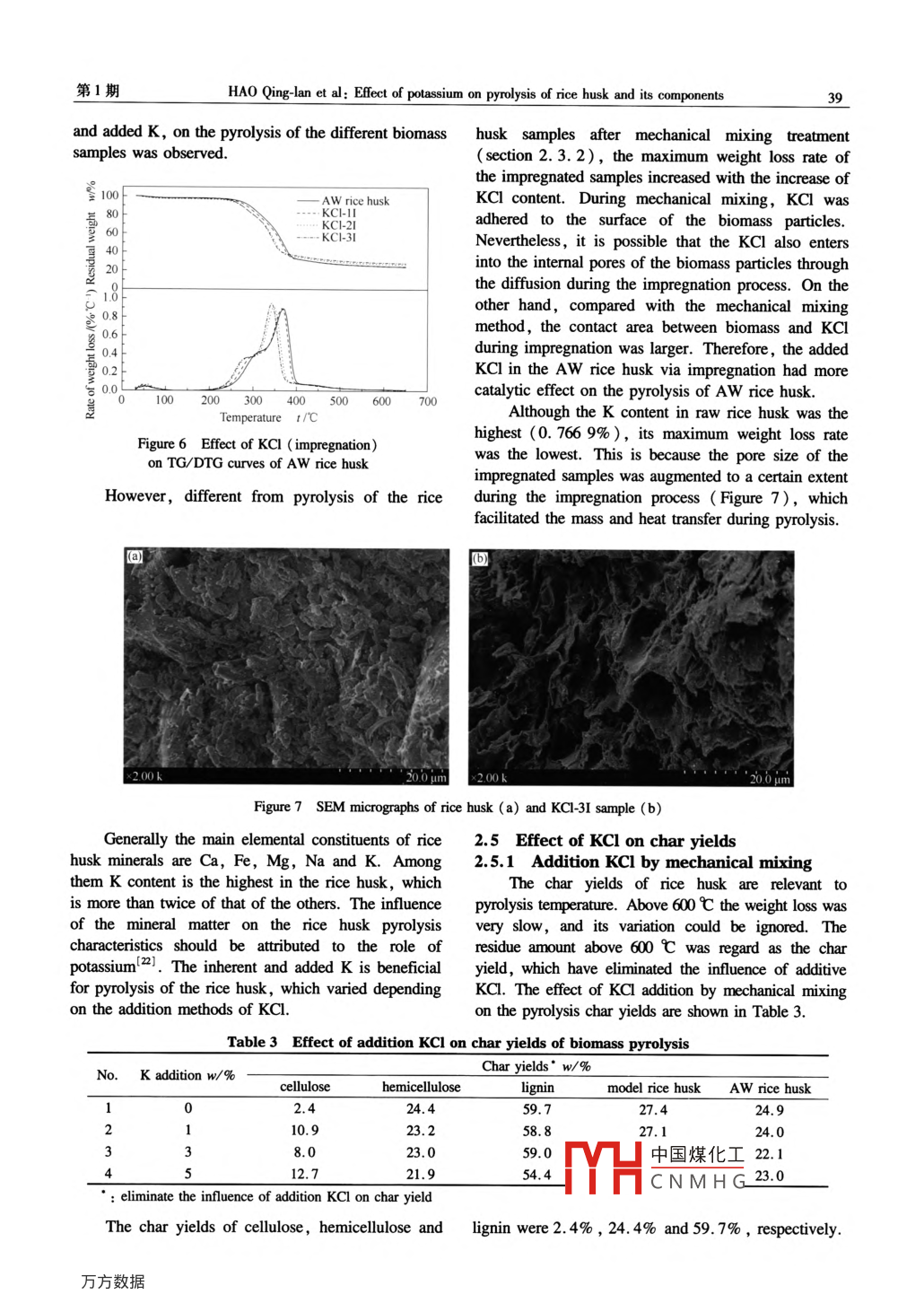 鉀元素對生物質(zhì)及其三組分熱解的影響