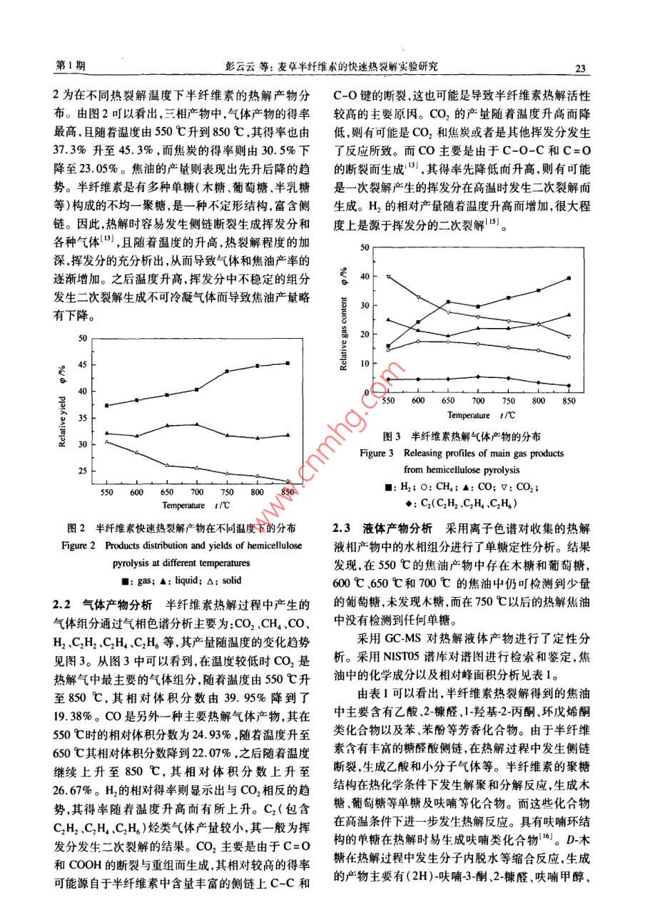 麥草半纖維素的快速熱裂解實(shí)驗(yàn)研究