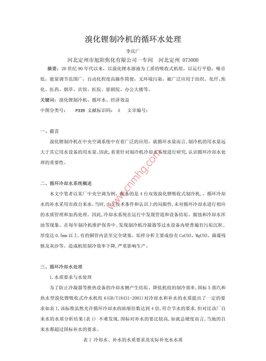 溴化鋰制冷機(jī)的循環(huán)水處理