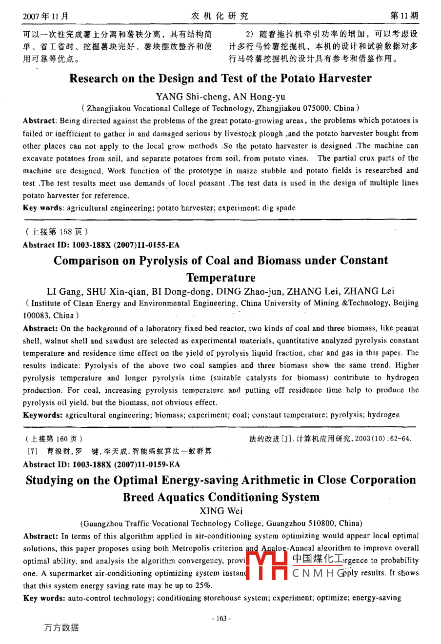 - 期刊名字:農(nóng)機化研究
