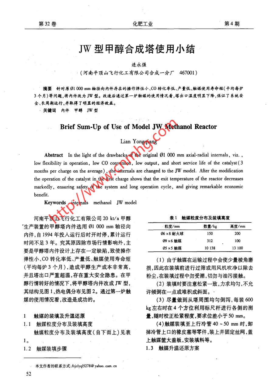 JW型甲醇合成塔使用小結