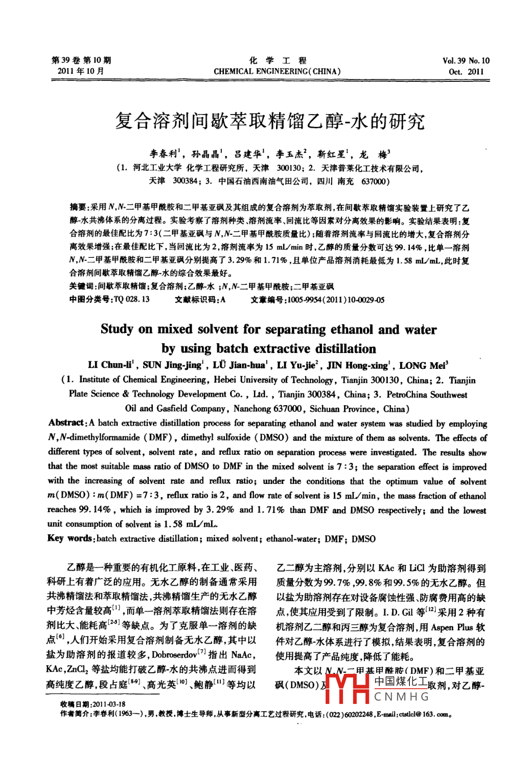 - 期刊名字:化學(xué)工程