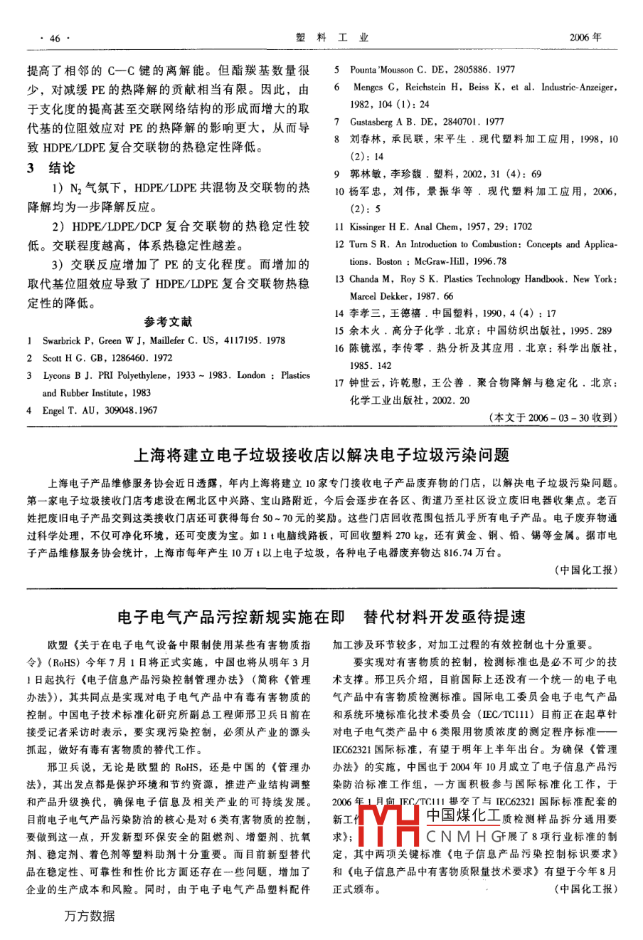 HDPE/LDPE復(fù)合交聯(lián)物的熱降解研究