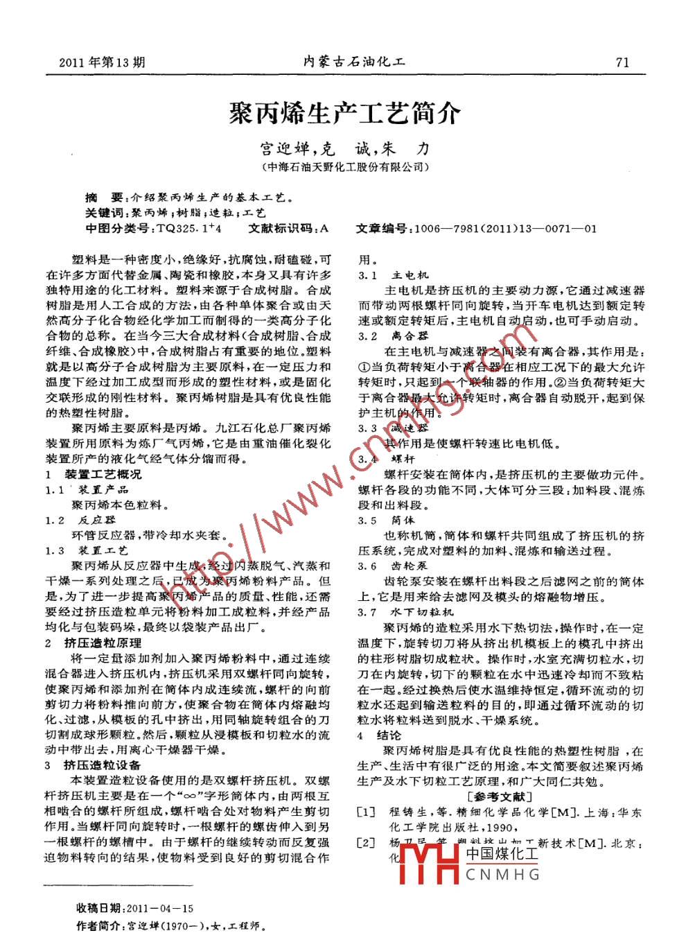 聚丙烯生產(chǎn)工藝簡介