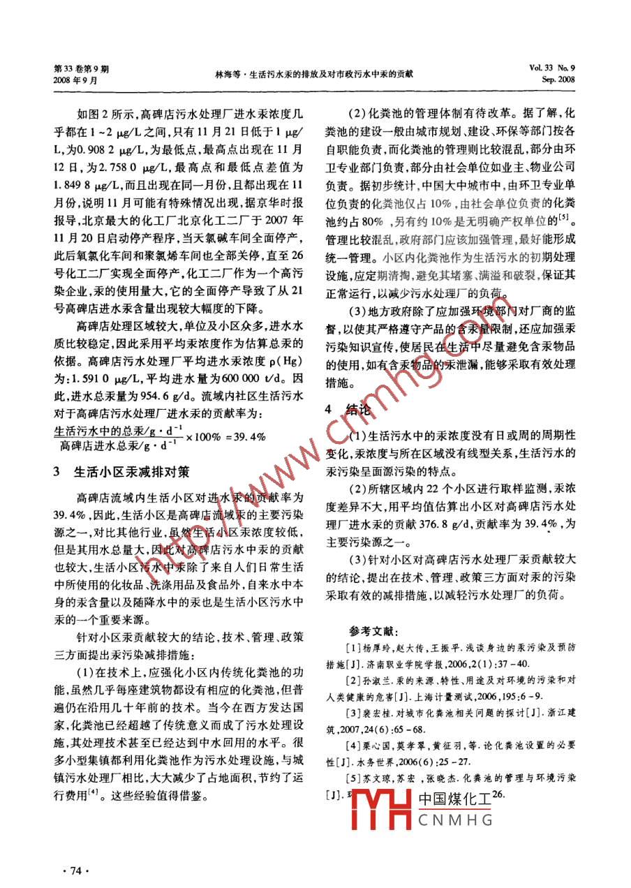 生活污水汞的排放及對市政污水中汞的貢獻