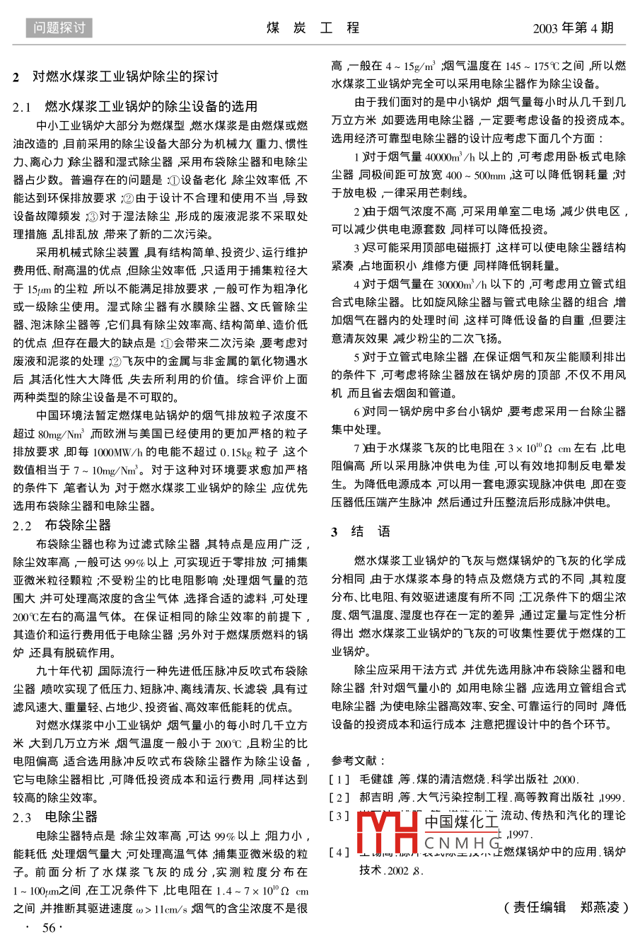 燃水煤漿工業(yè)鍋爐除塵的初步研究