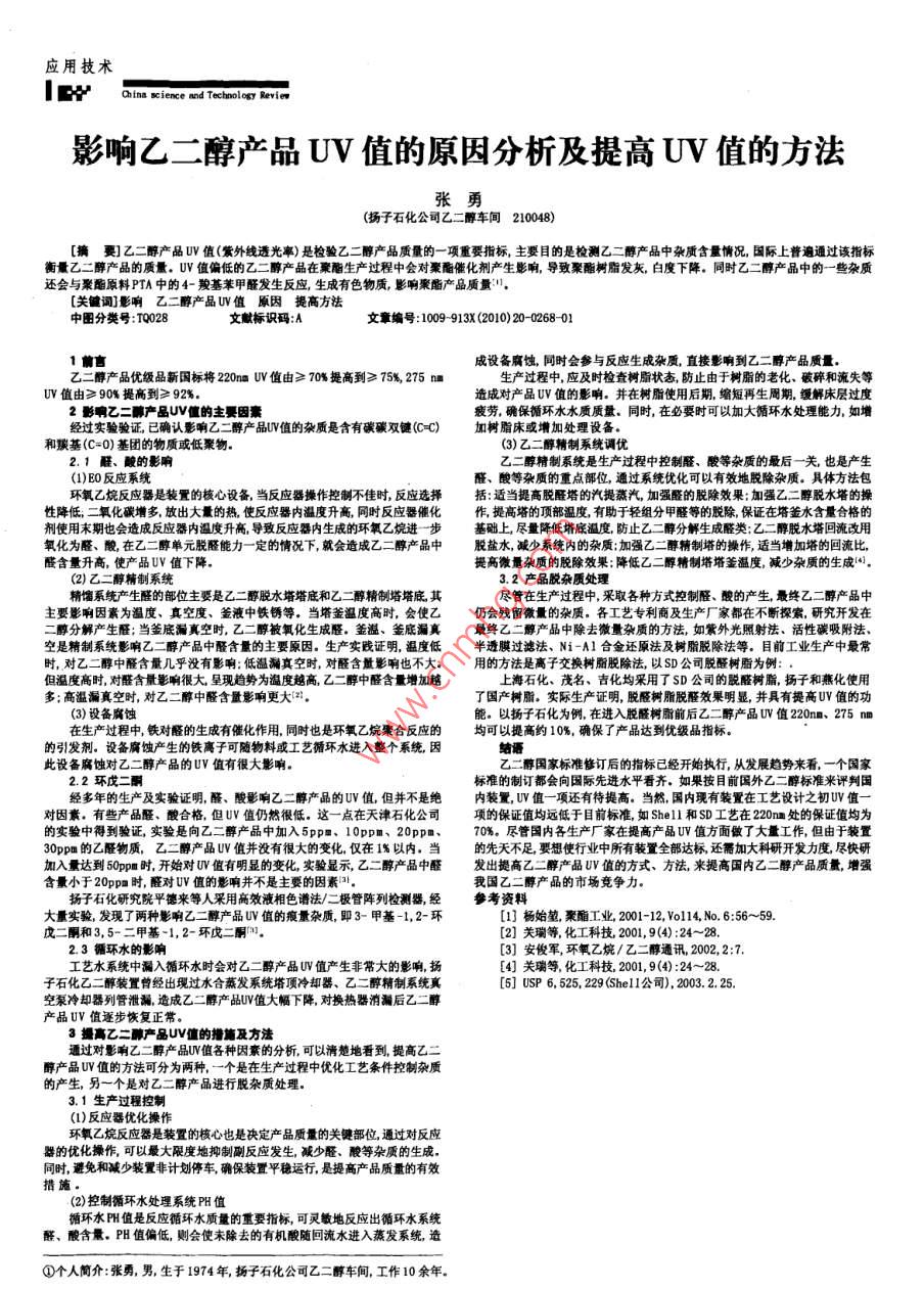 影響乙二醇產品UV值的原因分析及提高UV值的方法