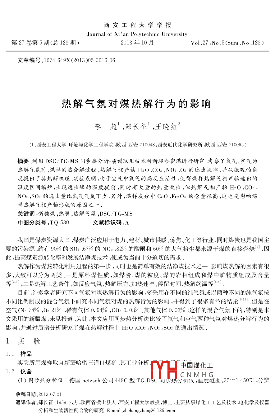 - 作者單位:西安工程大學(xué)環(huán)境與化學(xué)工程學(xué)院,西安近代化學(xué)研究所