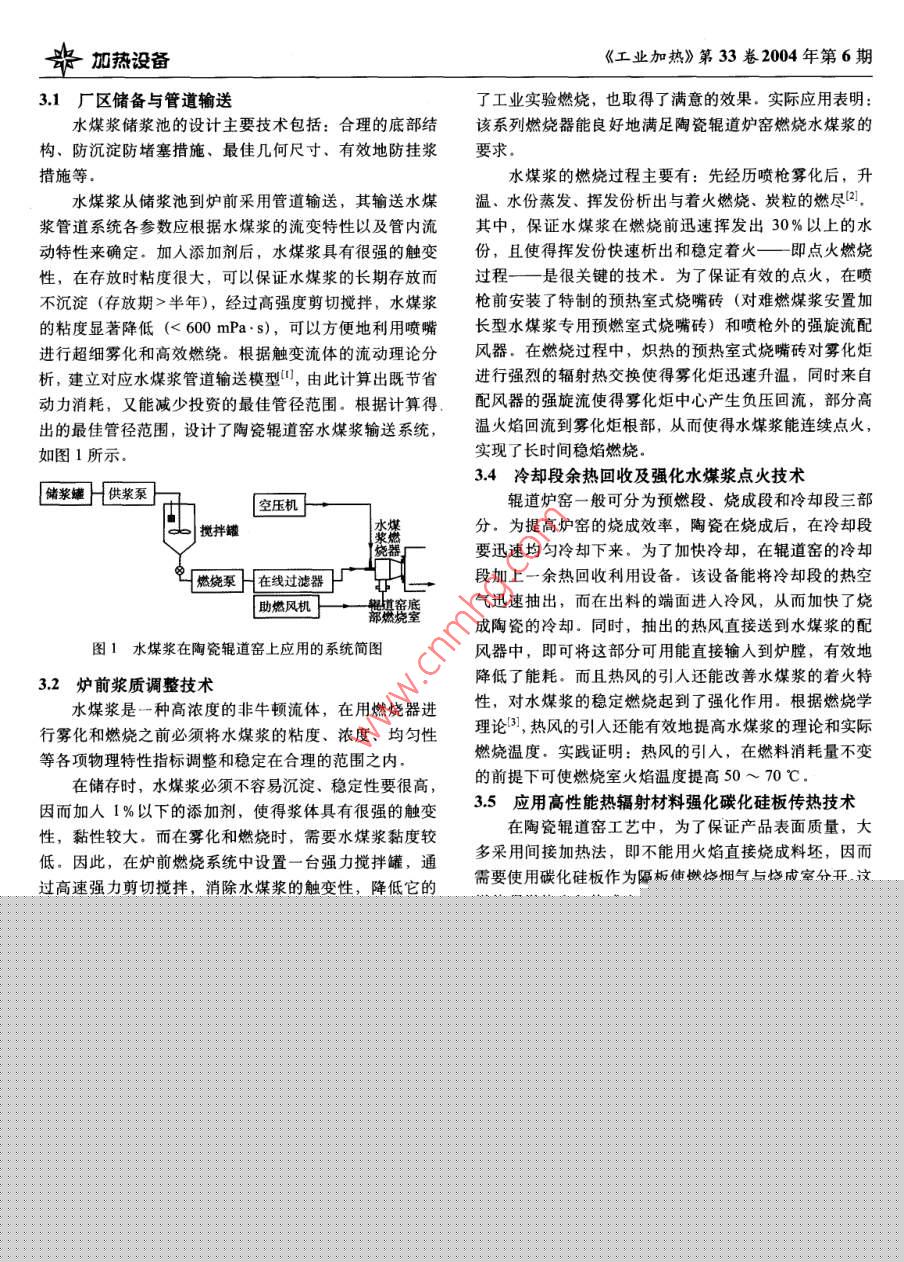 水煤漿成套燃燒技術(shù)在陶瓷輥道窯上的應(yīng)用