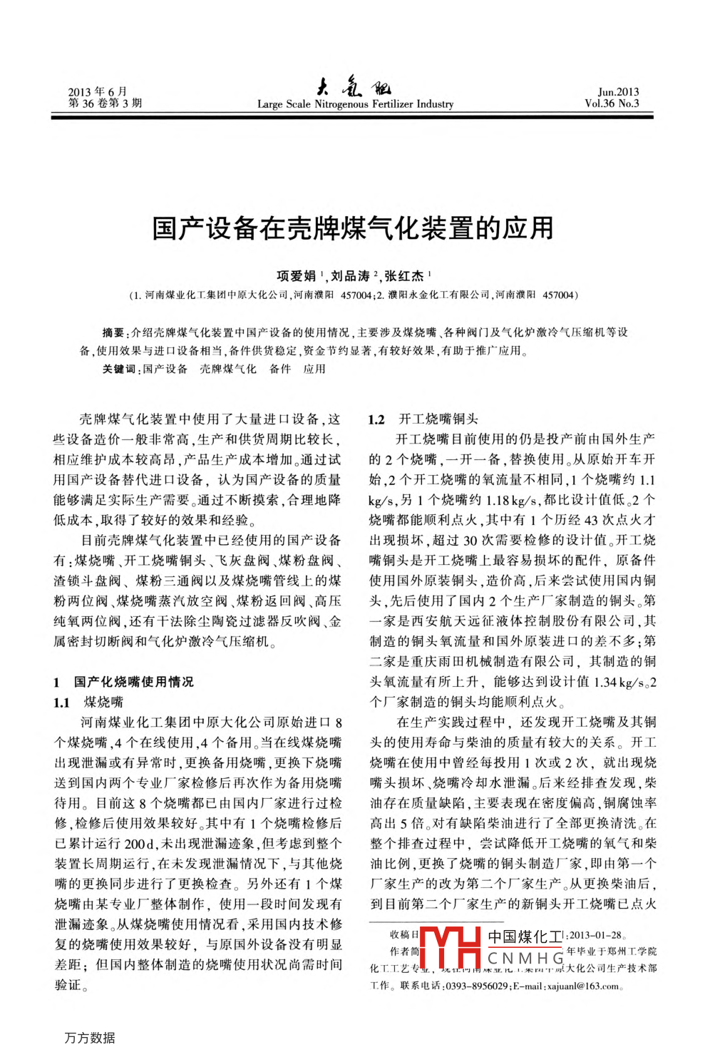 - 作者單位:河南煤業(yè)化工集團(tuán)中原大化公司,濮陽永金化工有限公司