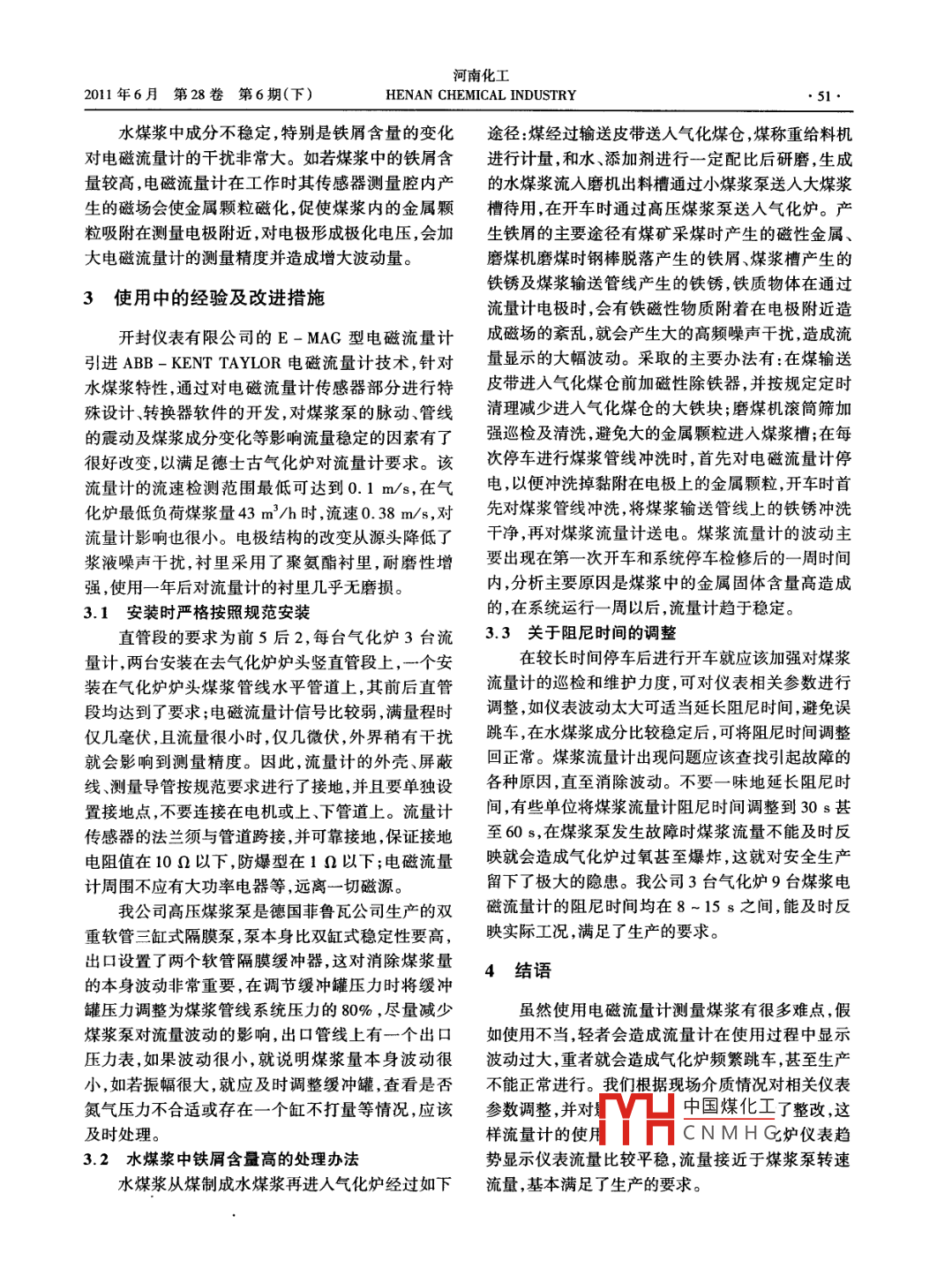 德士古氣化爐水煤漿電磁流量計(jì)的使用