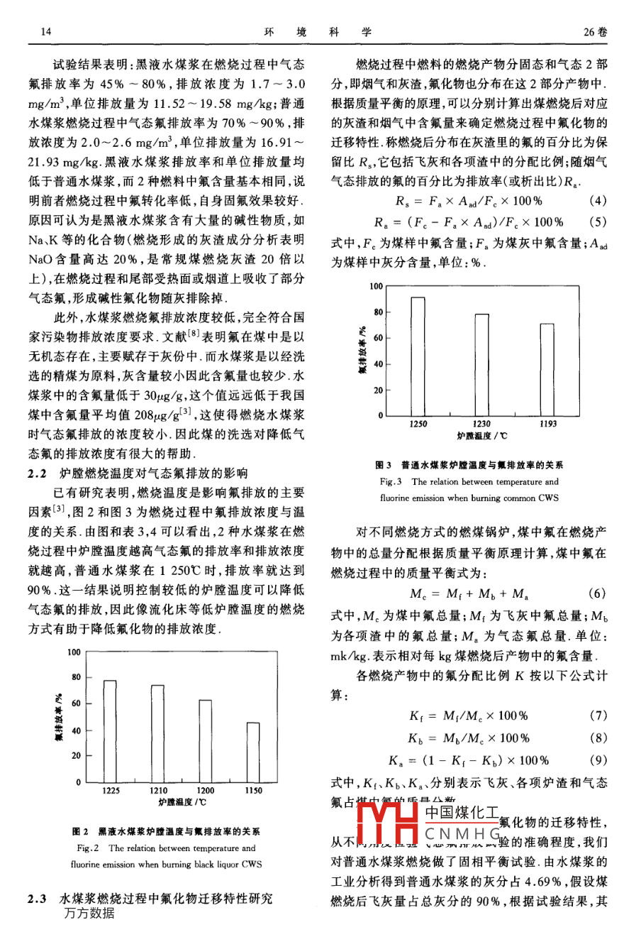 黑液水煤漿燃燒過(guò)程中氟排放特性