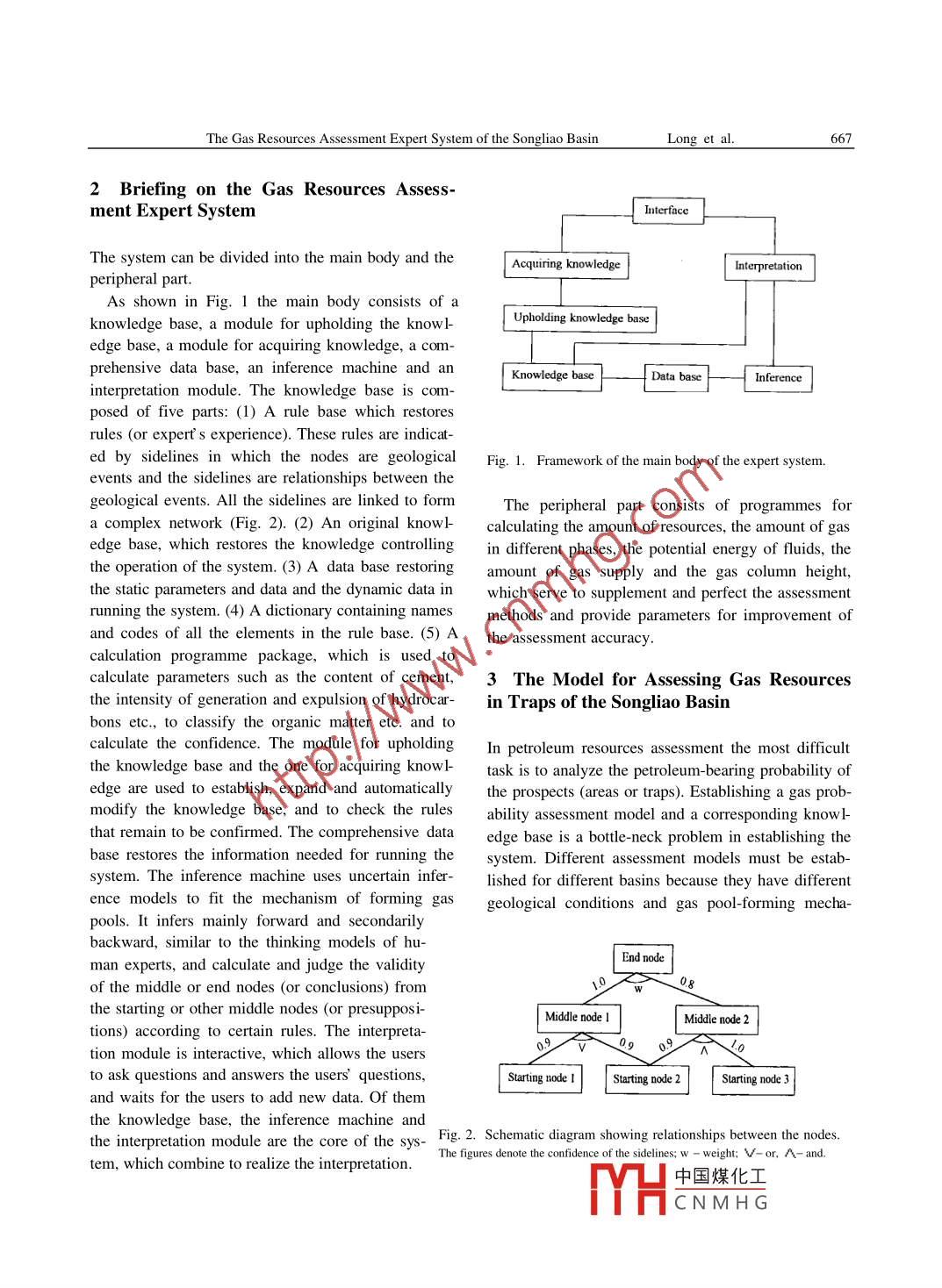 666Vol. 74 No. 3CTA GEOLOGICA SINICASept. 2000The Gas Resources Assessment Expert Systemof the Songliao basinLONG Shengxiang, WANG ChuanResearch Institute of Petroleum Geology, China National StarPetroleum Corportation CNSPC, 3/ Xueyuan Rd, Beijing 100083andi YuzhanExploration Department, CNSPC, 3/ Xueyuan Rd, Beijing 100083Abstract The gas resources assessment expert system is one of the advanced methods for appraising oil and gasresources. The establishment of a knowledge base is the focal task in developing the expert system. This paper pre-sents a summary of the mechanism and the major controlling factors in the formation of gas pools in the southeastuplift of the Songliao basin. Then an appropriate assessment model is established for trapping the gas resources andknowledge base built in the expert system to realize the model. By using the expert system to appraise the gasbearing probability of 25 major traps of the Quantou and denglouku Formations in the Shiwu-Dehui area, the authorshave proved that the expert system is suitable for appraising traps in the Songliao basin and similar basinsKey words: gas resources, assessment model, expert system, trap, pool-forming mechanism1 Introductionlimitation of the assessment model. In recent yearsmany experts have realized that an expert system canThe expert system, one of the three main branches of analyze all the geological conditions for formingartificial intelligence, is a computer software which pools based on the specific pool-forming mechanismuses the experts knowledge to solve some kinds of and greatly improve the reliability of the assessmentprofessional problems. Since the first expert system results. Up to the present there are 6 expert systemsDENDRAL was set up at Stanford University by the the expert system for classifying sedimentary basinsend of the 1960s, the expert systems have quickly the knowledge base for predicting source rocks, thecome into many fields, e. g. biology, medicine, chemi- PLAYMAKER expert system, the expert system forcal industry education. layt,engineering, researching exploration of the San Juan basin, thebusiness, military affairs, meteorology and geology, expert system PRES(Wu et al., 1987; Wang Weiyuanand displayed a brilliant prospect of applications and Wang Yuwen, 1989) and the gas resources a-( Denham, 1985; Krystinik and Clifton, 1985; Charles sessment expert system (Li et al., 1994; Wang Chuanand Stout, 1985; Liu, 1991). In China, the expert sys- et al., 1996), to be used directly or indirectly in petroems have been designed and applied in oil trap leum resources assessment. The above-mentioned gasevaluation(Tong Zhaoqi et al., 1993), hydrogeology resources assessment expert system is the first perfect(Wu Heng, 1994), crustal stability evaluation (Yin expert system aimed at gas resource. Based on theYueping et al., 1996), mineral deposit prognosis (Xiao experiences gained in partaking in the developmentShujian et al., 1997)and engineering(Yan Changhong and application of the system, combined with re-etal,1999)searches on basin analysis, petroleum system analysisetroleum resources assessment is a complex sys- and pool-forming mechanisms, the authors have etems engineering. Traditional statistical methods and tablished an assessment model for the gas resources inbasin modelling are often unable to integrate all the traps of the Songliao basin and used it to appraise thegeological factors to give reliable results owing to the traps in the shiy中國煤化工CNMHGThe Gas Resources Assessment Expert System of the Songliao BasinLor2 Briefing on the Gas Resources Assessment Expert systemInterfaceThe system can be divided into the main body and theAcquiring knowledgeInterpretationAs shown in Fig. I the main body consists of aknowledge base, a module for upholding the know l-edge base, a module for acquiring knowledge, a com-prehensive data base, an inference machine and anKnowledge basData baseInfereinterpretation module. The knowledge base is composed of five parts:(1)A rule base which restoresrules (or expert s experience). These rules are indicat-ed by sidelines in which the nodes are geological Fig. 1. Framework of the main body of the expert systemevents and the sidelines are relationships between thegeological events. All the sidelines are linked to formThe peripheral part consists of programmes fora complex network (Fig. 2).(2)An original knowl- calculating the amount of resources, the amount of gasdge base. which restorknowledge controlling in different phases, the potential energy of fluids, thethe operation of the system. (3)a data base restoring amount of gas supply and the gas column height,he static parameters and data and the dynamic data in which serve to supplement and perfect the assessmentrunning the system. (4)A dictionary containing names methods and provide parameters for improvement ofand codes of all the elements in the rule base. (5)a the assessment accuracycalculation programme package, which is used tocalculate parameters such as the content of cement, 3 The Model for Assessing Gas Resourcesthe intensity of generation and expulsion of hydrocar- in Traps of the Songliao Basinbons etc to classify the organic matter etc. and tocalculate the confidence. The module for upholding In petroleum resources assessment the most difficultthe knowledge base and the one for acquiring knowl- task is to analyze the petroleum-bearing probability ofdge are used to establish, expand and automatically the prospects(areas or traps). Establishing a gas prob-dmodify the knowledge base, and to check the rules ability assessment model and a corresponding knowl-that remain to be confirmed. The comprehensive data edge base is a bottle-neck problem in establishing thebase restores the information needed for running the system. Different assessment models must be estabsystem. The inference machine uses uncertain infer- lished for different basins because they have differentence models to fit the mechanism of