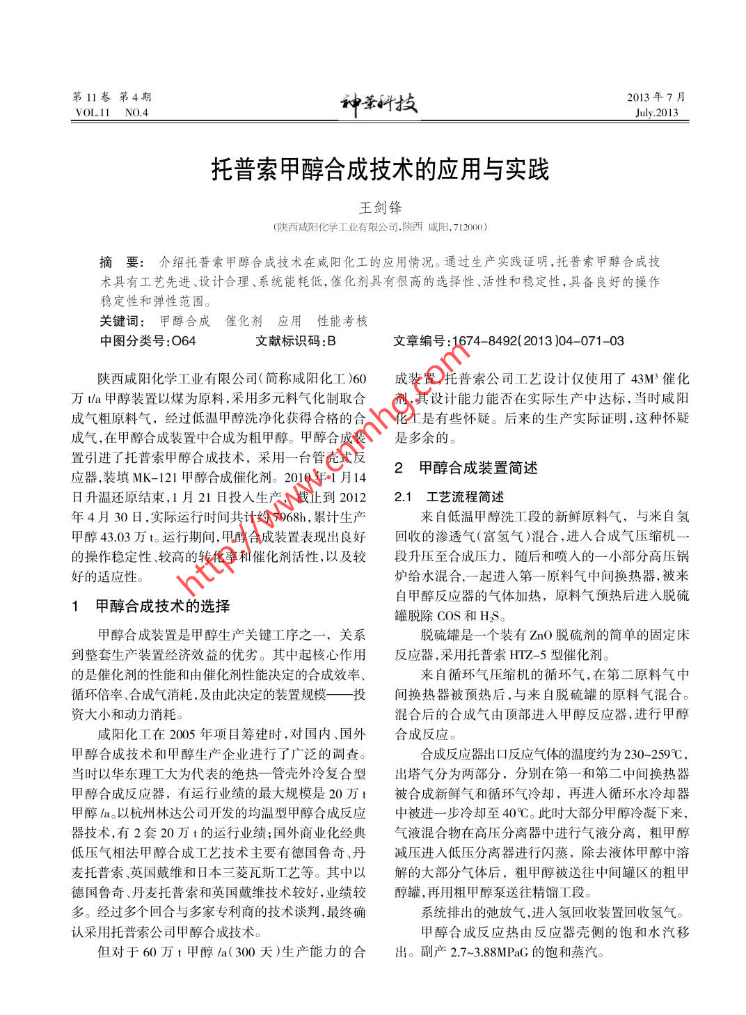 托普索甲醇合成技術(shù)的應(yīng)用與實(shí)踐