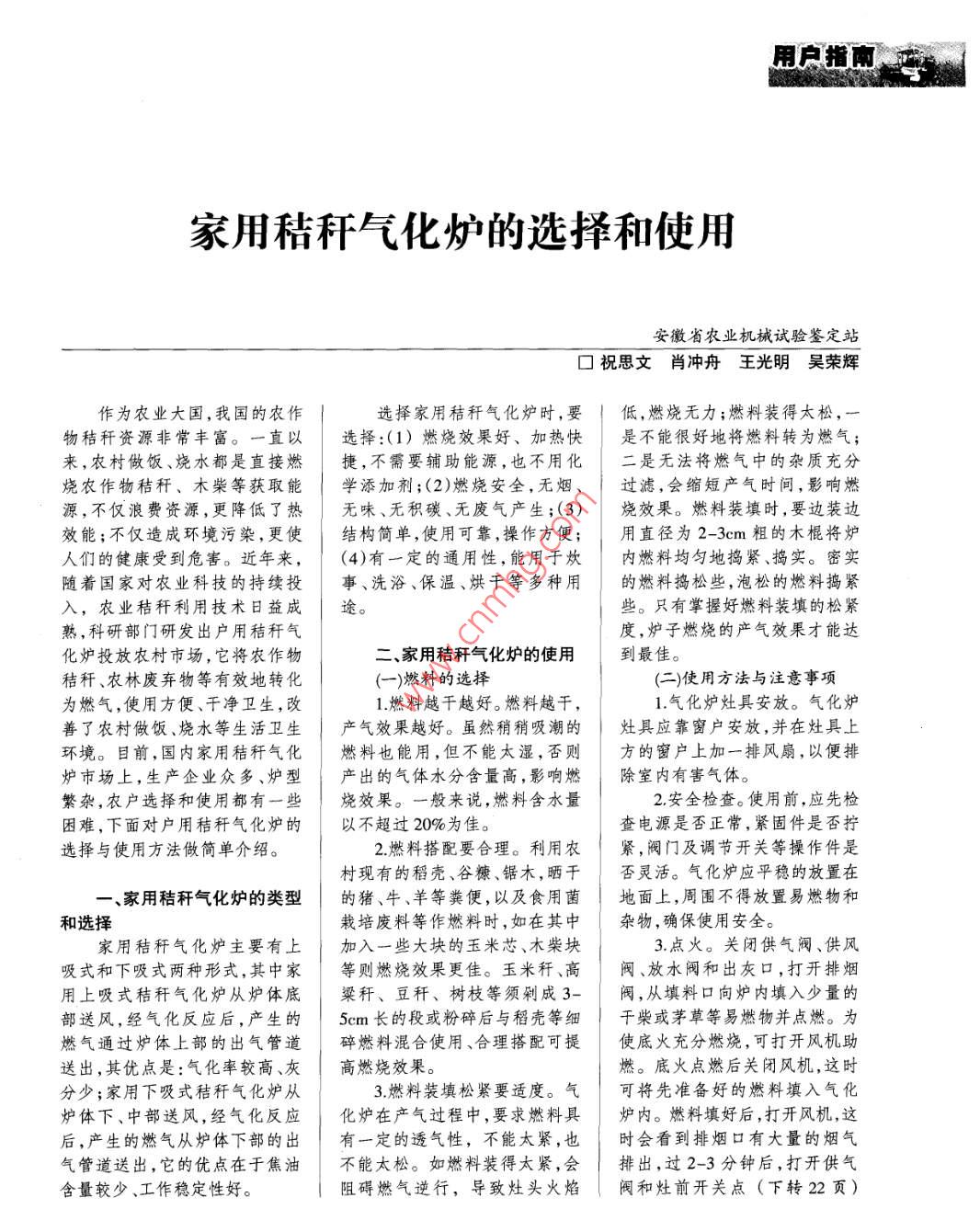 家用秸稈氣化爐的選擇和使斥