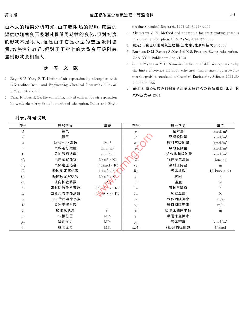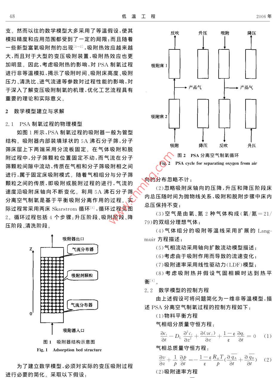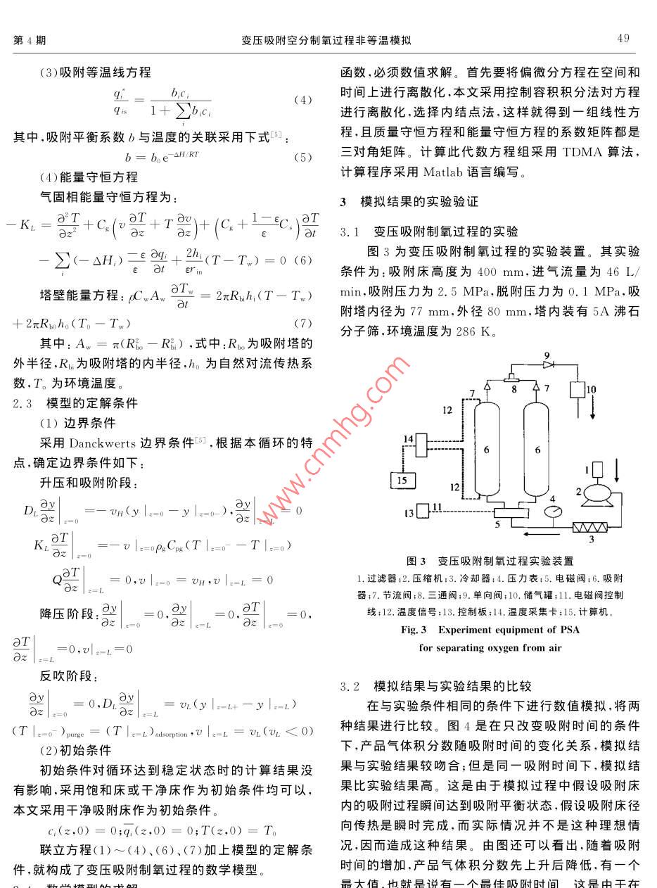 變壓吸附空分制氧過程非等溫模擬