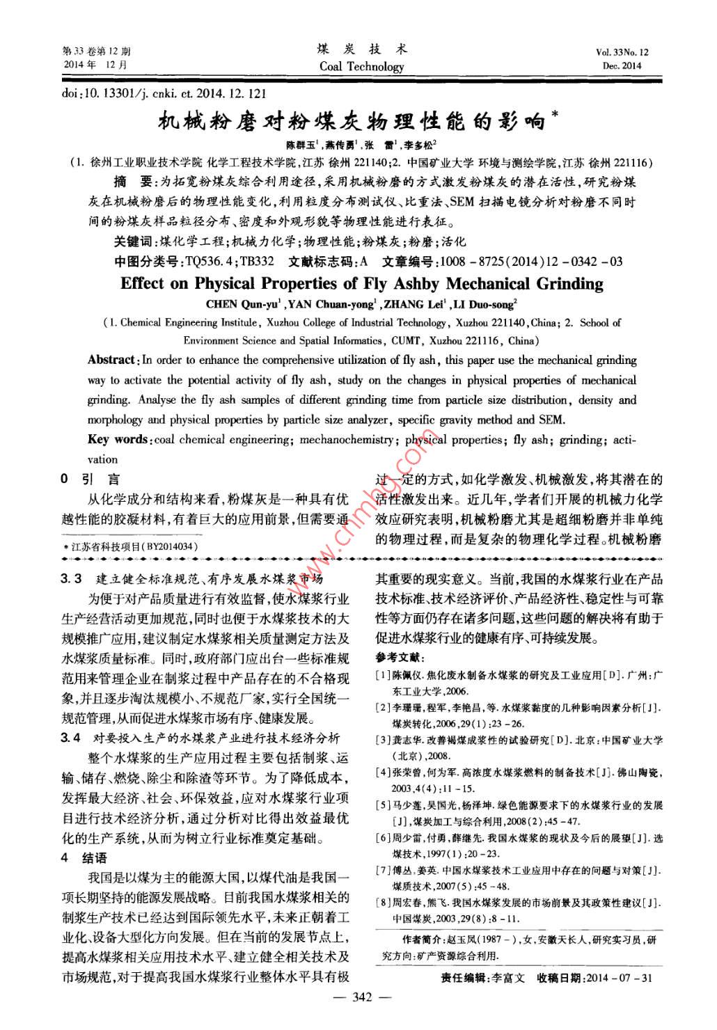 第33卷第12期煤炭技術(shù)Vol. 33No. 122014年12月Coal TechnologyDec. 2014li:10.13301/j.cnki.ct.2014.12.120我國水媒漿行業(yè)發(fā)展現(xiàn)狀、建議及長望趙玉鳳(中國國土資源經(jīng)濟(jì)研究院,河北三河065201)摘要:水煤漿是一種煤基流體燃料,具有節(jié)能環(huán)保、經(jīng)濟(jì)、安全并且燃燒效率高等優(yōu)點(diǎn)。近年來我國不僅在水煤漿技術(shù)研究方面取得了較大發(fā)展,而且水煤漿在工業(yè)上已有了廣泛應(yīng)用,但仍存在產(chǎn)品穩(wěn)定性差、運(yùn)輸成本高、市場混亂、政策法規(guī)等不健全、缺乏統(tǒng)一合理的標(biāo)準(zhǔn)等問題。因此,在加大水煤漿技術(shù)開發(fā)應(yīng)用的同時(shí),應(yīng)進(jìn)一步提高和完善相關(guān)技術(shù)及市場規(guī)范,從而提高我國水煤漿行業(yè)發(fā)展水平及產(chǎn)品競爭力。關(guān)鍵詞:煤炭;水煤漿;技術(shù);政策中圖分類號:X784;TQ517文獻(xiàn)標(biāo)志碼:A文章編號:1008-8725(2014)12-0340-03Present Situation, Suggestion and Outlook of Coal Water SlurryIndustry in ChinaZHAO Yu-fengChinese Academy of Land and Resource Economics, Sanhe 065201, China)Abstract: Coal water slurry is a kind of coal-based liquid fuel, which possesses the advantages of energy con-servation, environmental protection, safety, economy and high combustion efficiency. In recent years, our counthas made considerable development in technology research of coal water slurry, and the coal water slurry hasbeen widely used in different industries. However, there are still many application problems, such as poor product stability, high transport cost, market chaos, lack of policies, regulations and unified reasonable standard andso on. As a result, with the development of coal water slurry technology and application, the relevant technologyand market regulation should be further improved, which will improve theopment level of the whole coalwater slury industry and the competitiveness of the product in our country.Key words: coal; coal water slurry; technology policy0前言目前,我國的水煤漿生產(chǎn)正向大型化、規(guī)?;较虬l(fā)我國整體的能源結(jié)構(gòu)為煤炭資源豐富,而油氣匱展,水煤漿制漿工藝亦呈多樣化發(fā)展趨向,我國水煤乏,煤炭在我國能源結(jié)構(gòu)中仍占據(jù)主導(dǎo)地位即使到漿技術(shù)水平已經(jīng)跨進(jìn)世界先進(jìn)行列。2050年,煤炭在我國能源結(jié)構(gòu)中的比例也不會<35%。燃用水煤漿與直接燒煤相比,具有燃燒效率高、作為潔凈煤技術(shù)中重要分支之一的水煤漿技術(shù),對于負(fù)荷易調(diào)控、節(jié)能和環(huán)境效益好等顯著優(yōu)點(diǎn)。水煤提高我國煤炭利用率、減少煤炭燃燒帶來的環(huán)境污染、漿經(jīng)長距離管道輸送到終端后可直接燃用,儲運(yùn)過實(shí)現(xiàn)我國煤炭資源髙效、清潔利用具有重要意義。而程全封閉,既減少損失又不污染環(huán)境,是解決我國煤且,隨著國際油價(jià)的不斷走高以及煤炭燃燒過程中污炭運(yùn)力不足問題的重要途徑之一。相關(guān)研究表明染問題的日益嚴(yán)重煤代油的相關(guān)研究和應(yīng)用必將逐約2t水煤漿可替代1t燃料油。與燃煤和燃油相漸成為能源領(lǐng)域研究的重要發(fā)展方向之一。比,水煤漿還可顯著減少NO,的排放。這是因?yàn)樗覈簼{技術(shù)發(fā)展現(xiàn)狀煤漿燃燒過程中的火焰溫度比直接燃燒煤粉低150水煤漿是21世紀(jì)70年代石油危機(jī)中發(fā)展起來℃左右,可實(shí)現(xiàn)低NO排放燃燒。與此同時(shí),水煤漿的一種新型煤基流體燃料,由70%左右的煤炭、的應(yīng)用對有效減少SO2的排放、提高煤炭的綜合利30%左右的水和少量的添加劑組成的具有一定穩(wěn)定用效率減少其他化工環(huán)節(jié)的廢水廢料、改造老鍋爐性和流動性、可長距離泵送的漿狀煤炭產(chǎn)品。水煤節(jié)省成本等方面都有著非常積極的現(xiàn)實(shí)意義。燃燒漿不僅可以在電站鍋爐、工業(yè)鍋爐和窯爐中直接燃水煤漿的燃燒效率高,在相同的熱量下可減少燃煤燒,還可以代替油或代替煤氣作為燃料使用。我國量,從而減少環(huán)境污染問題的發(fā)生。我國每年用于水煤漿技術(shù)研究始于1982年,得到了國家和政府的電站鍋爐燃燒的重油高達(dá)4000萬t,其中相當(dāng)一部重視,連續(xù)10年被國家列為“六五”、“七五”重大科分可以用水煤漿替代,若將其中的50%用水煤漿代技攻關(guān)項(xiàng)日,水煤漿技術(shù)研究取得了多項(xiàng)重大科技替每年可代油約200萬t,節(jié)約燃料費(fèi)達(dá)100億成果,并已形成具有中國特色的水煤漿系統(tǒng)技術(shù)。元以上,節(jié)省的油再進(jìn)行深加工后,每噸油又可產(chǎn)生第33卷第12期我國水煤漿行業(yè)發(fā)展現(xiàn)狀建議及展望—一趙玉鳳Vol. 33 No. 12400-500元效益,同時(shí)每年就需4000萬t水煤漿。還在于市場的推廣。已存在的市場的一些好的現(xiàn)行由此可見,水煤漿不僅具有很好的環(huán)保效益,而且經(jīng)狀況應(yīng)加以鞏固,同時(shí)應(yīng)加強(qiáng)潛在市場的培育和發(fā)濟(jì)效益也很顯著,水煤漿技術(shù)的開發(fā)與應(yīng)用對于我展。這就要求加大技術(shù)經(jīng)濟(jì)評價(jià)、政策制定等方面國能源結(jié)構(gòu)的調(diào)整有著重要意義。的工作。消費(fèi)者對水煤漿的認(rèn)知及接受程度是另一近年來,隨著水煤漿技術(shù)的不斷發(fā)