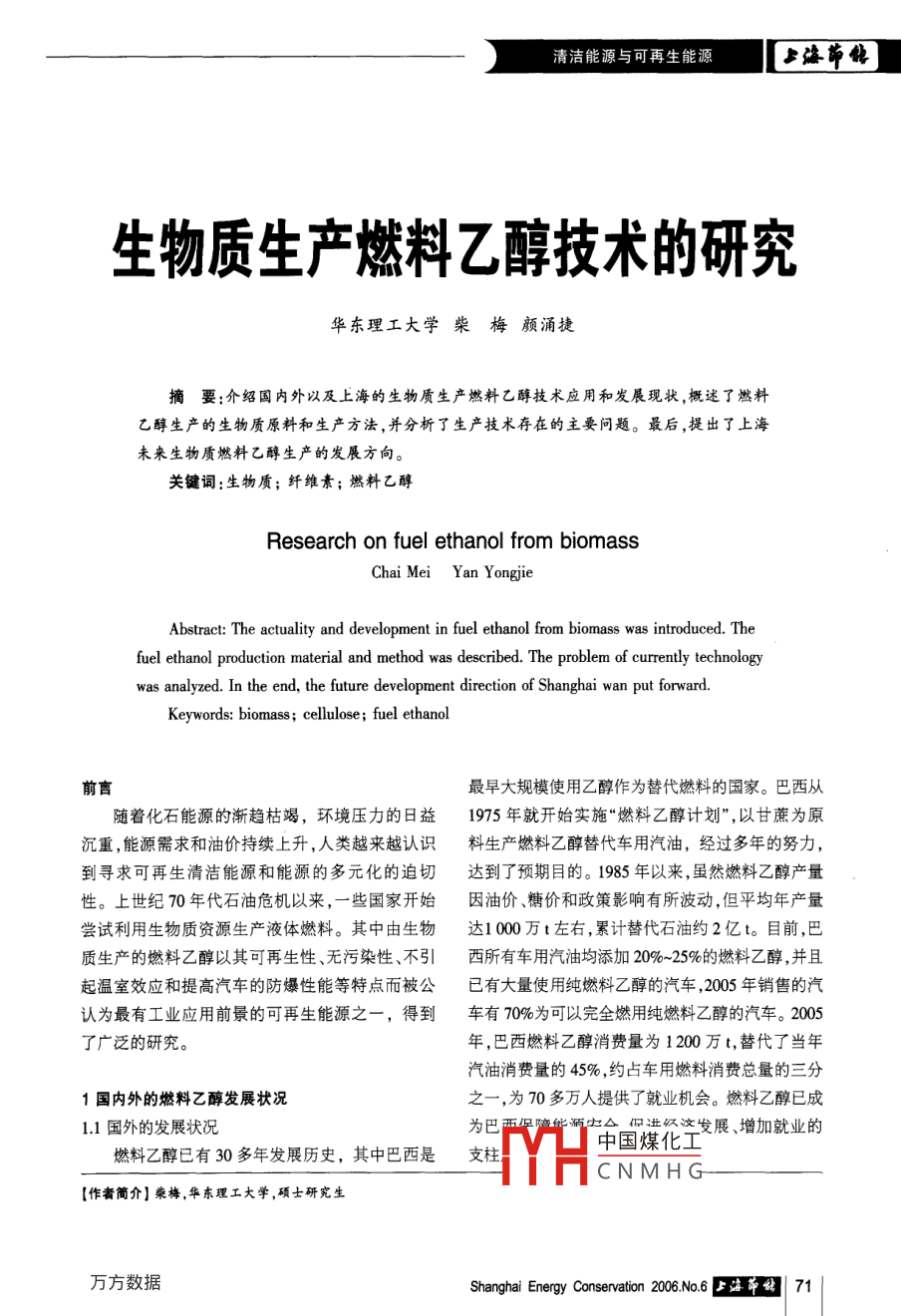 生物質(zhì)生產(chǎn)燃料乙醇技術(shù)的研究