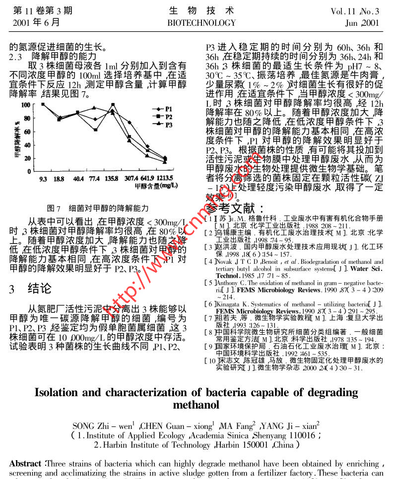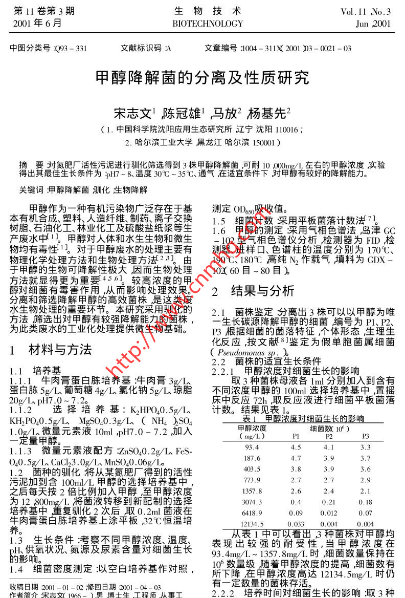甲醇降解菌的分離及性質(zhì)研究